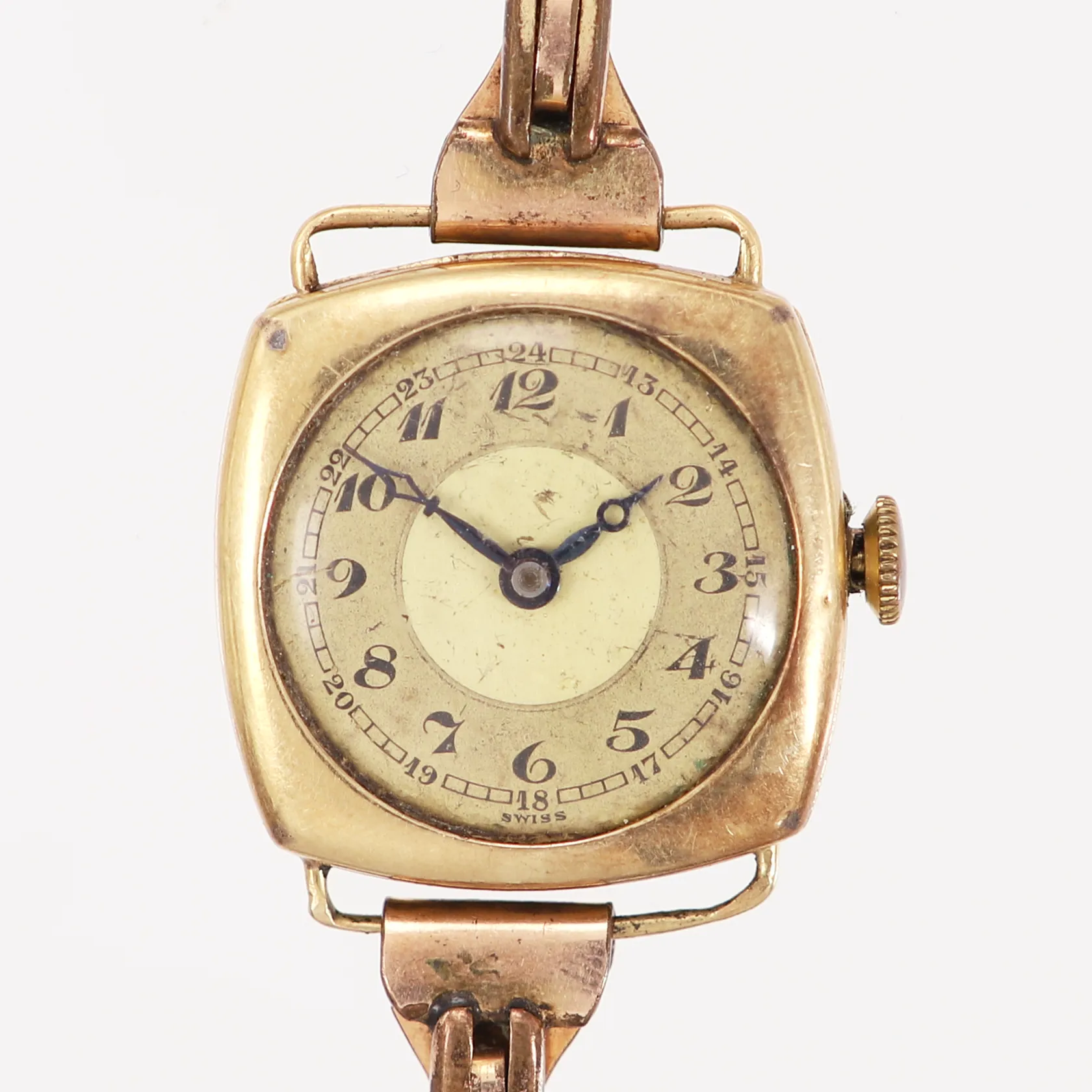 Damur boett i 14K, manuell, 25x30mm, länk i doublé, slitage, bruttovikt: 22,3 gram