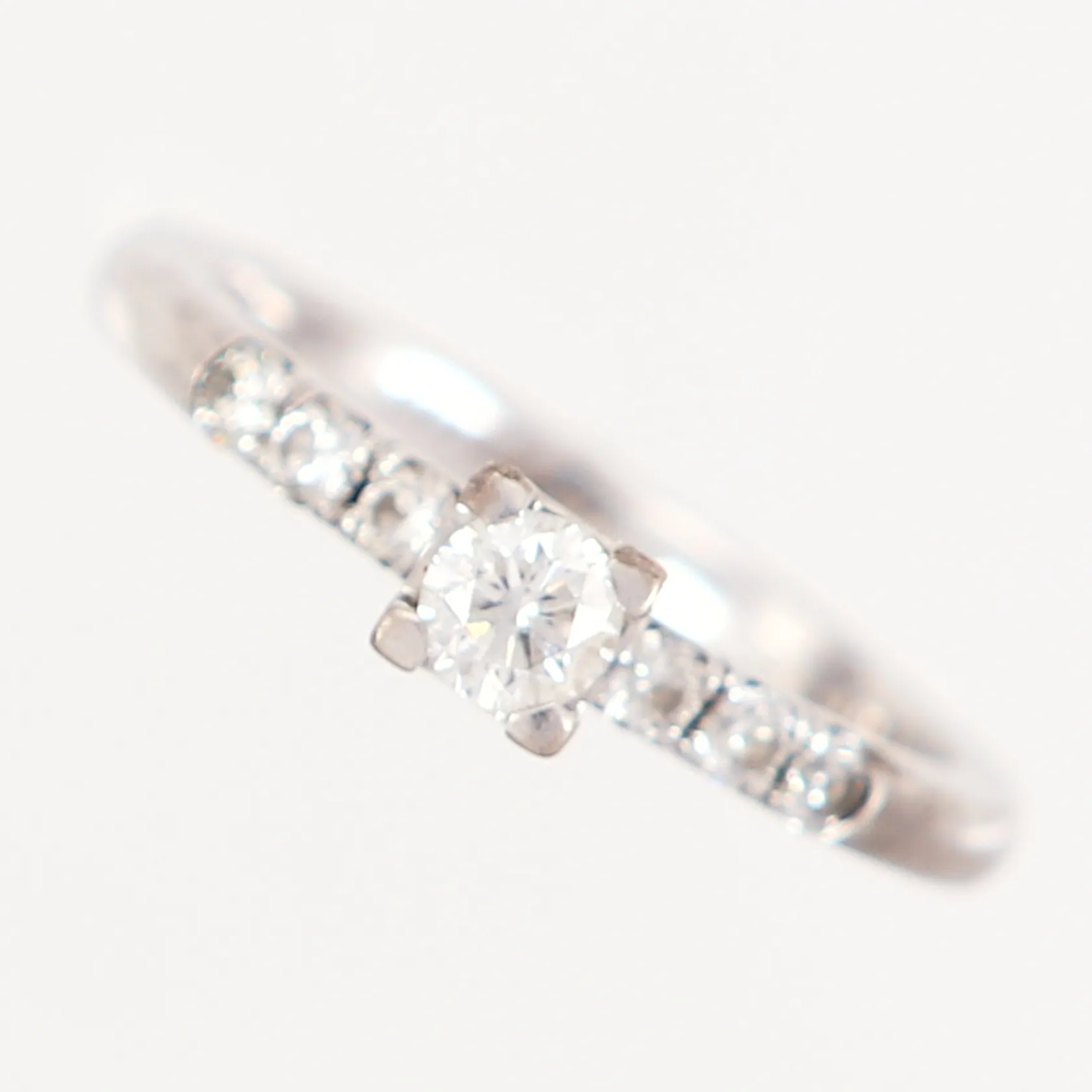 Ring med 7 syntetiska diamanter totalt 0,41ct enligt gravyr, vitguld, stl 16¾, bredd: 2-4mm, GLENSIA, gravyr, 18K Vikt: 3,4 g.