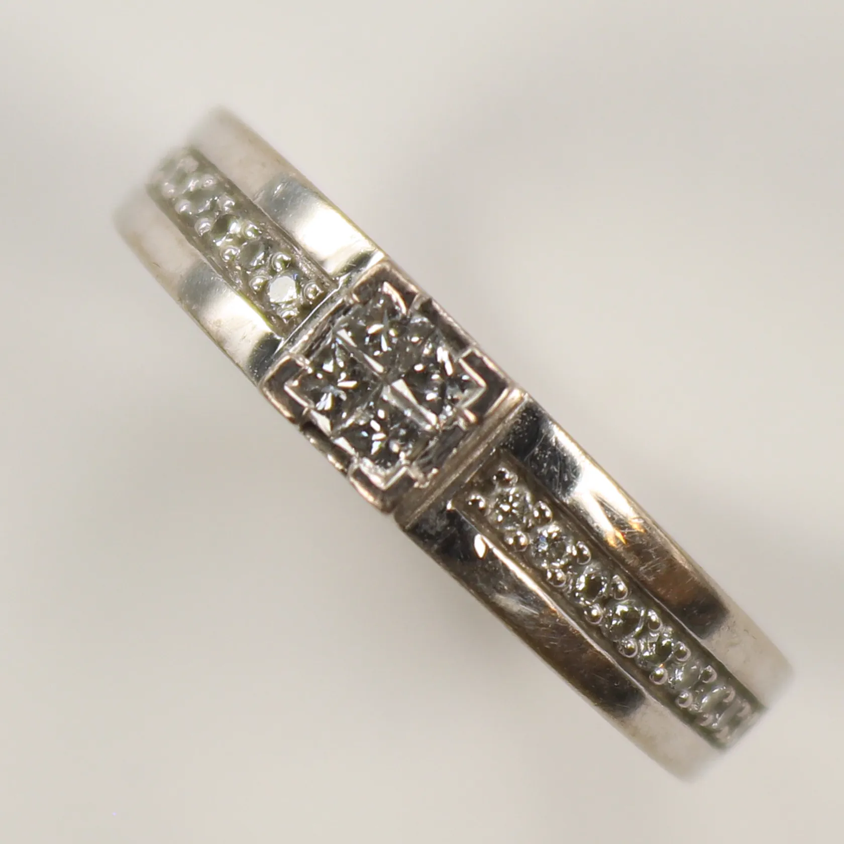 Ring med diamanter totalt 0,25ct enligt gravyr, stl ca 16, bredd 3mm, vitguld, 18K Vikt: 4,5 g.