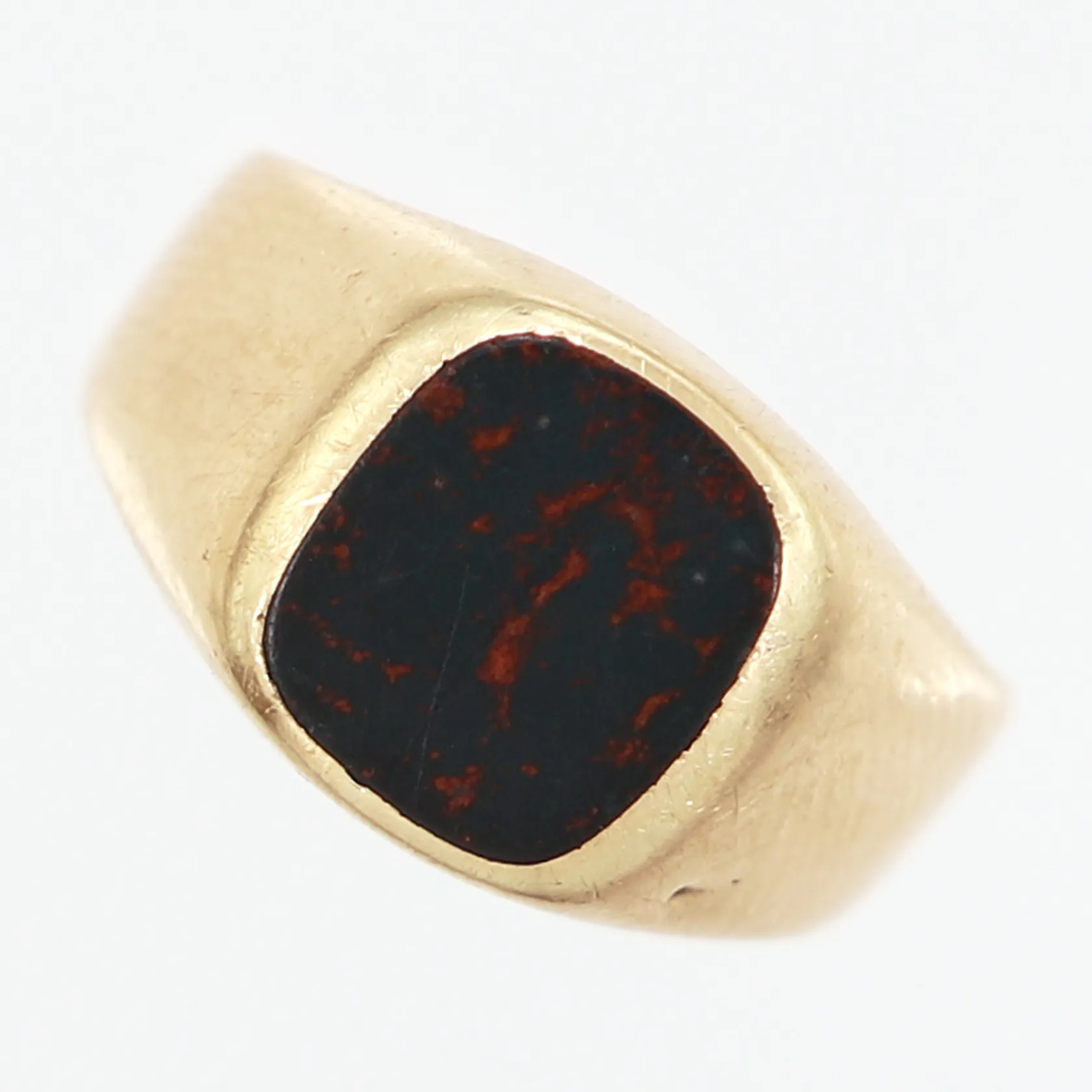 Klackring med heliotrop stl 17½, bredd: 4-11mm, slitage på skena, 14K Vikt: 3 g.