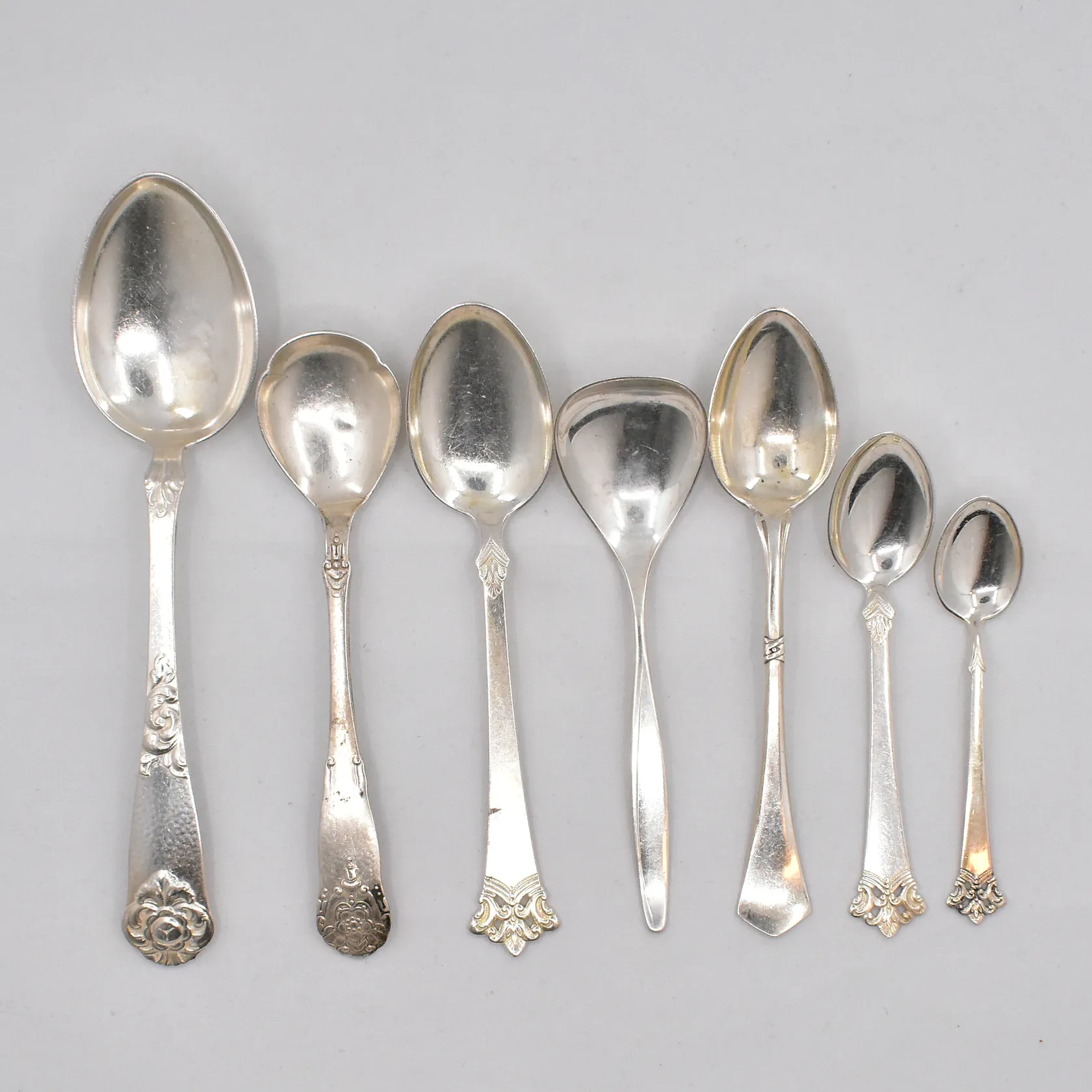 7 skedar olika modeller, 9,5-18cm, 830/1000 silver Vikt: 134,9 g.
