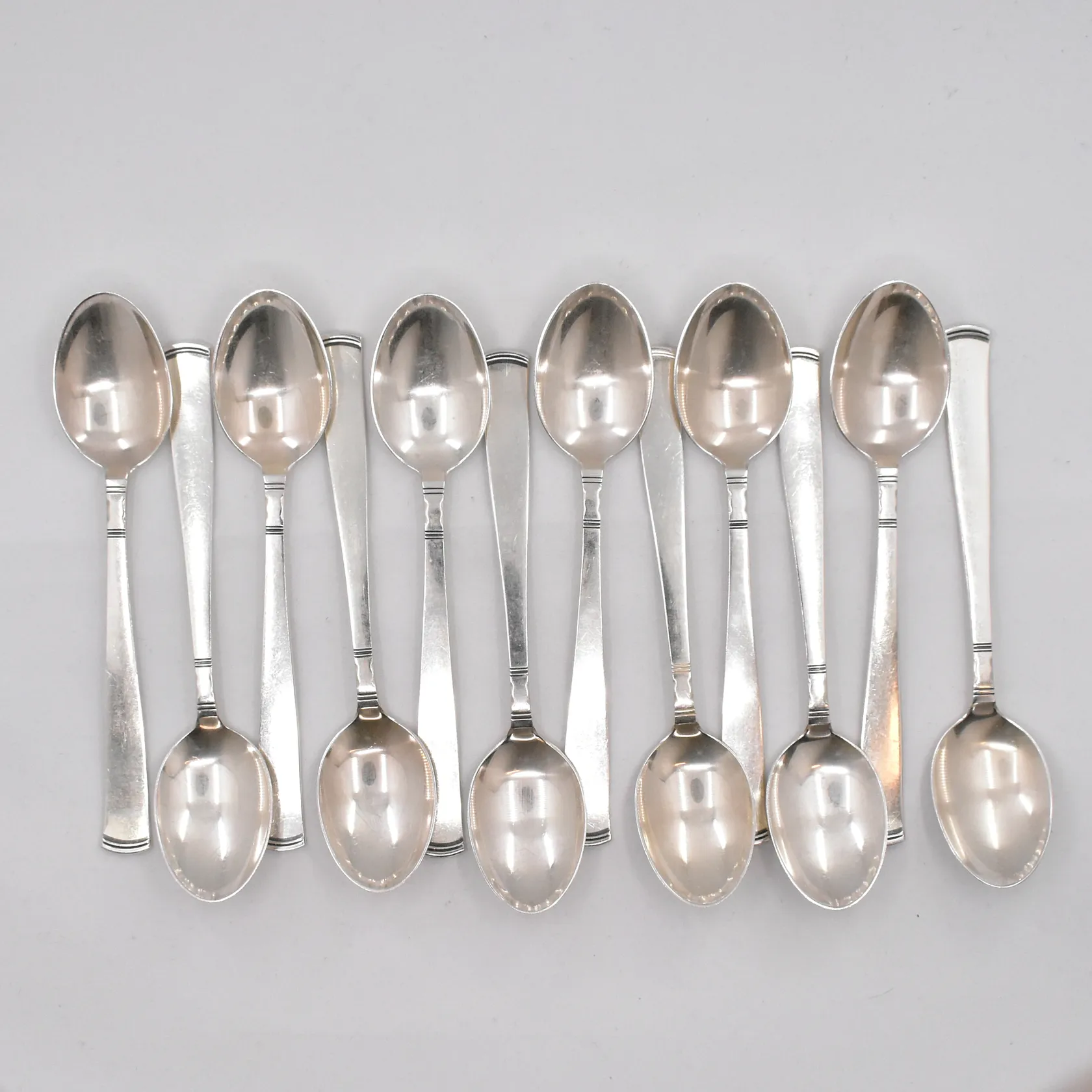 12 efterrättsskedar modell Rosenholm, 15cm, GAB, 830/1000 silver Vikt: 323,4 g.