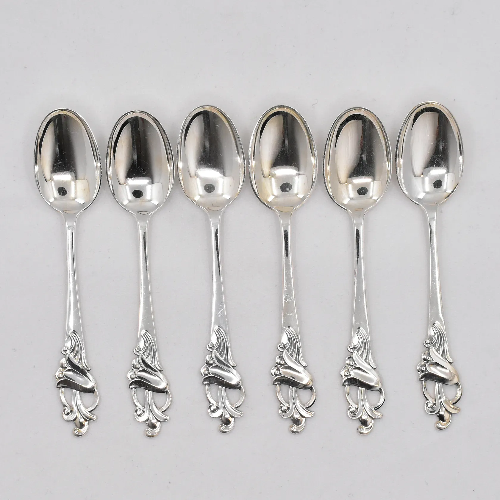 6 kaffeskedar, 11,5cm, modell Blåklocka, schatull 830/1000 silver Vikt: 61,1 g.