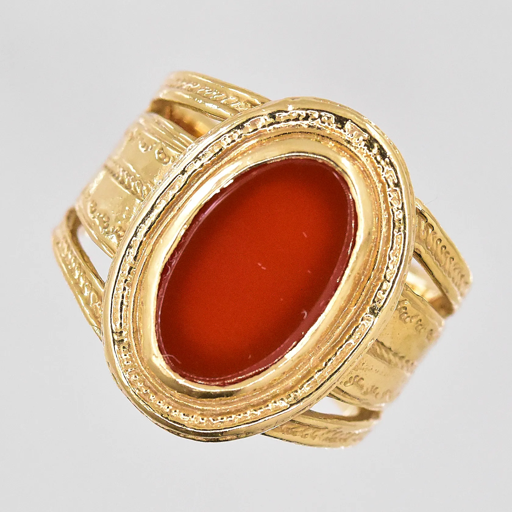 Ring med karneol, stl 19, COPY, BEH Bengt Hallberg Guldsmeds AB Köping, 18K Vikt: 15,6 g.
