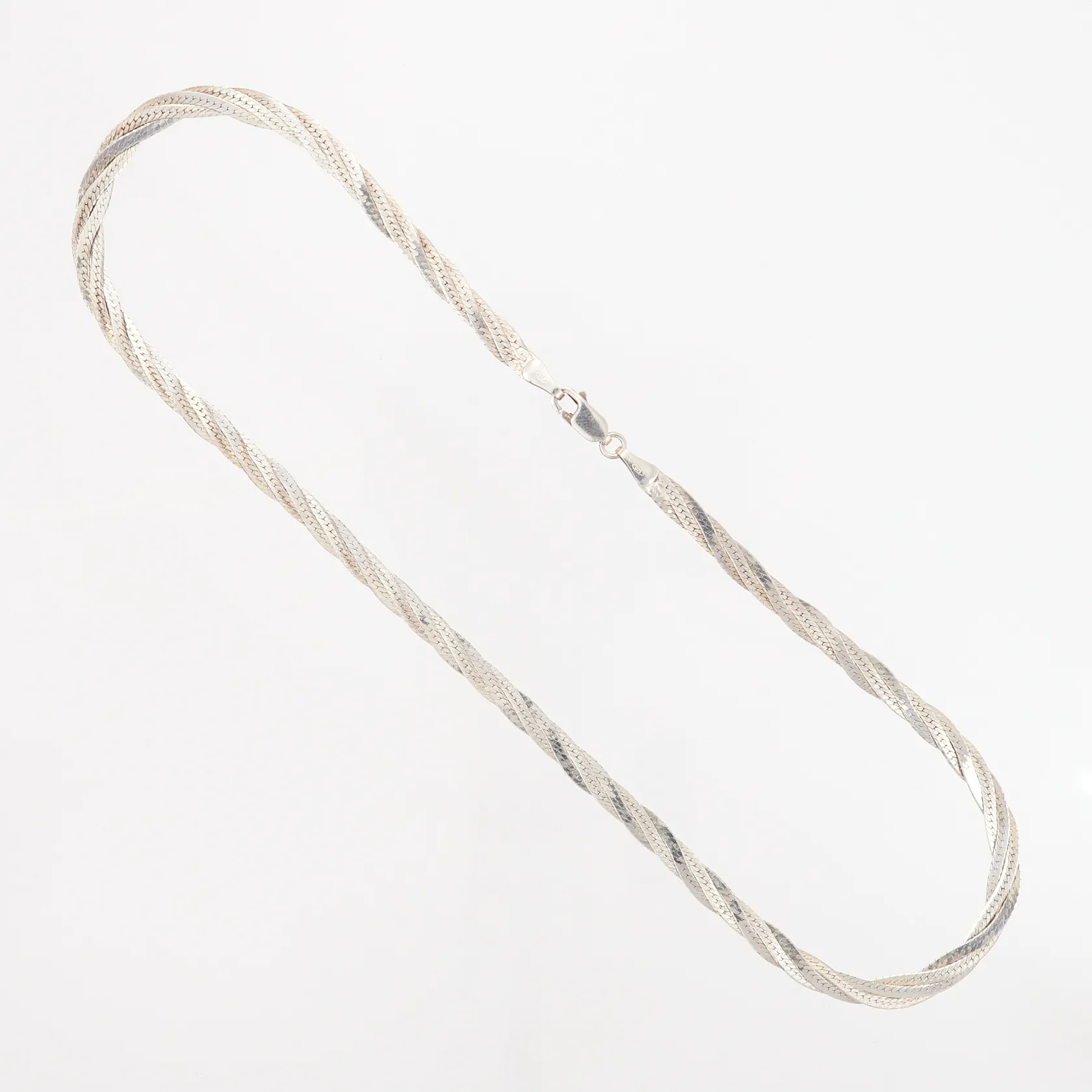 Collier flätad ankarkedja fyr-radig 42cm, bredd: 5mm, stämplad CGH, 925/1000 Silver. Vikt: 10,8 g.