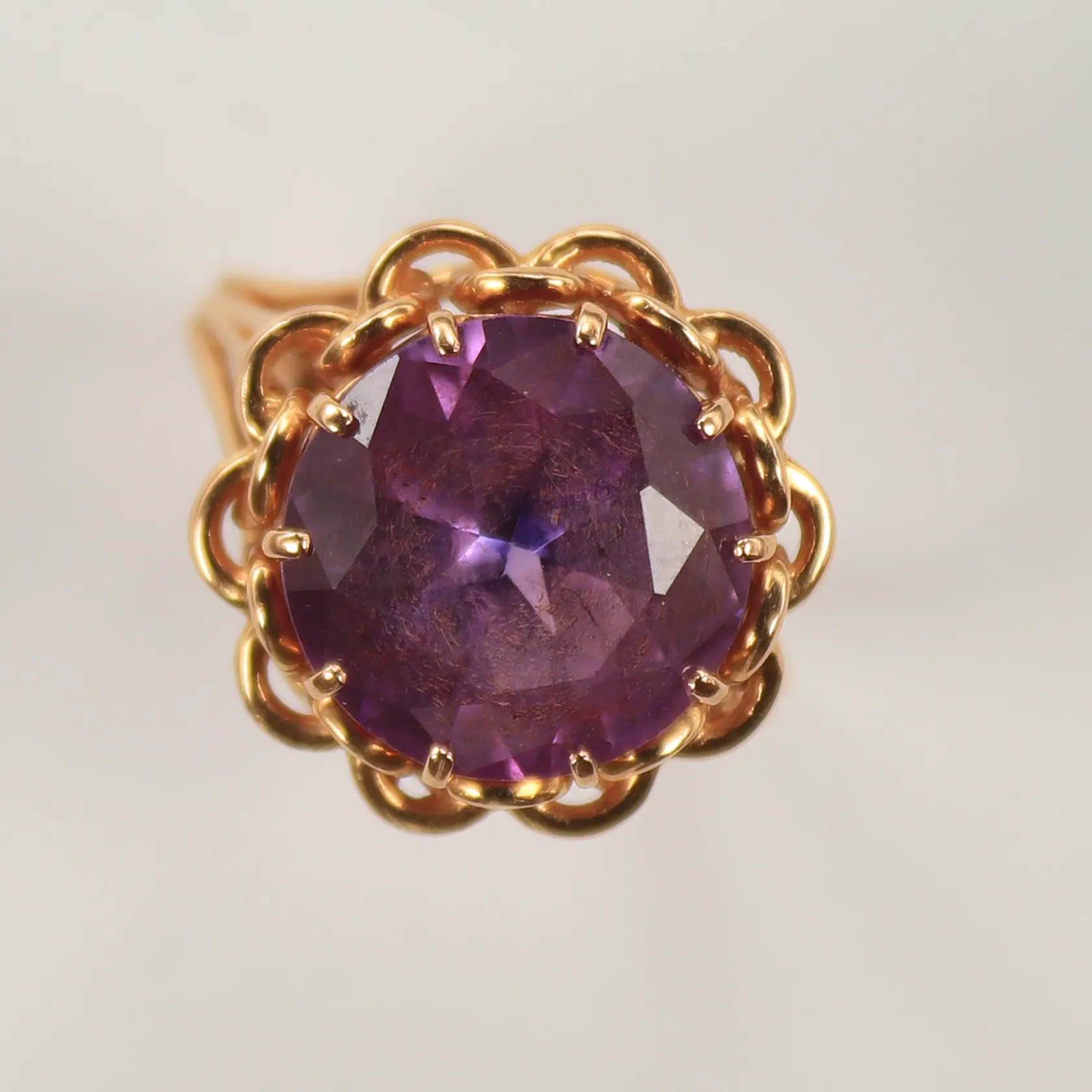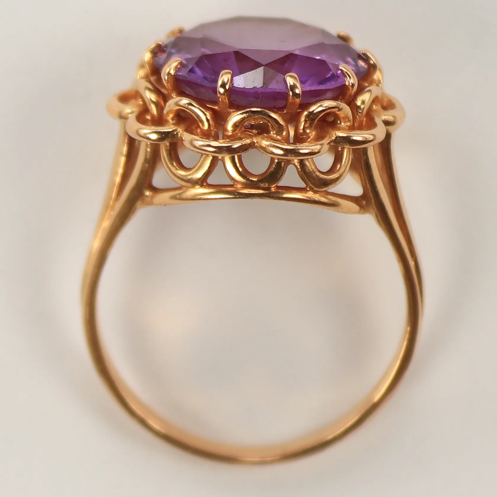 Ring med rosa sten, stl 17¼, bredd 1-15mm, 14K, bruttovikt 5,6g (guldvikt ca 4g) Vikt: 5,6 g.