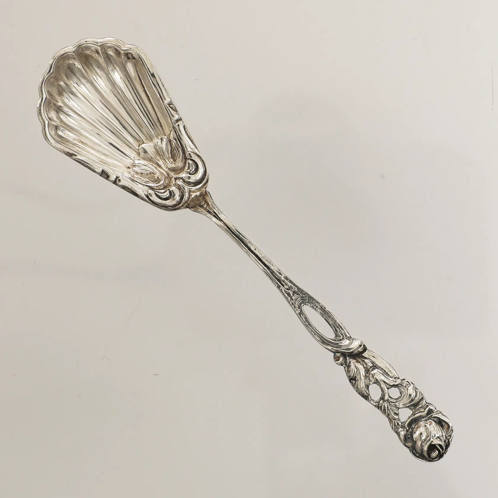Sockersked, floral dekor, längd 12cm, silver 830/1000 Vikt: 10,9 g.