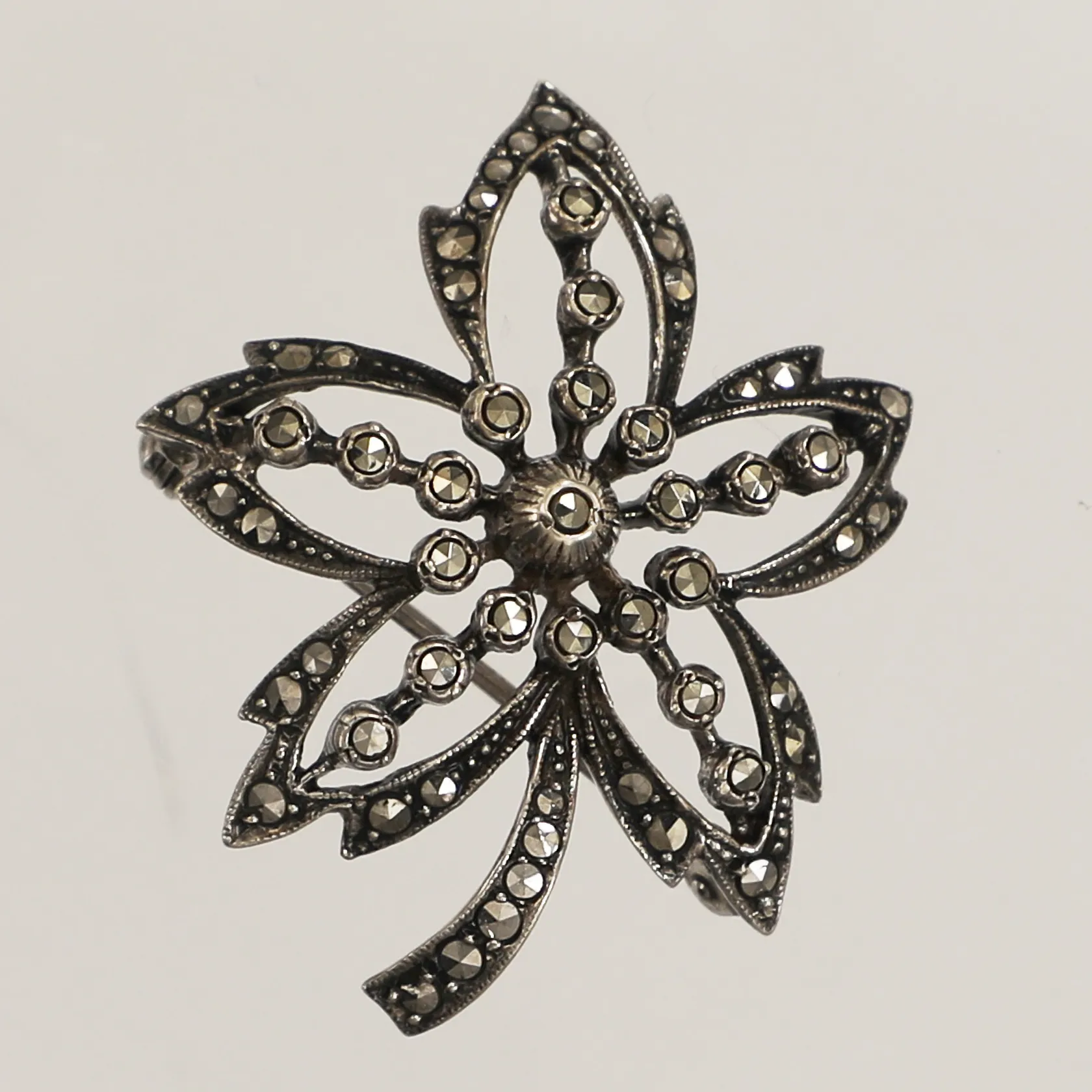 Brosch med markasiter, längd 32mm, bredd 38,5mm, 830/1000 silver Vikt: 6,5 g.