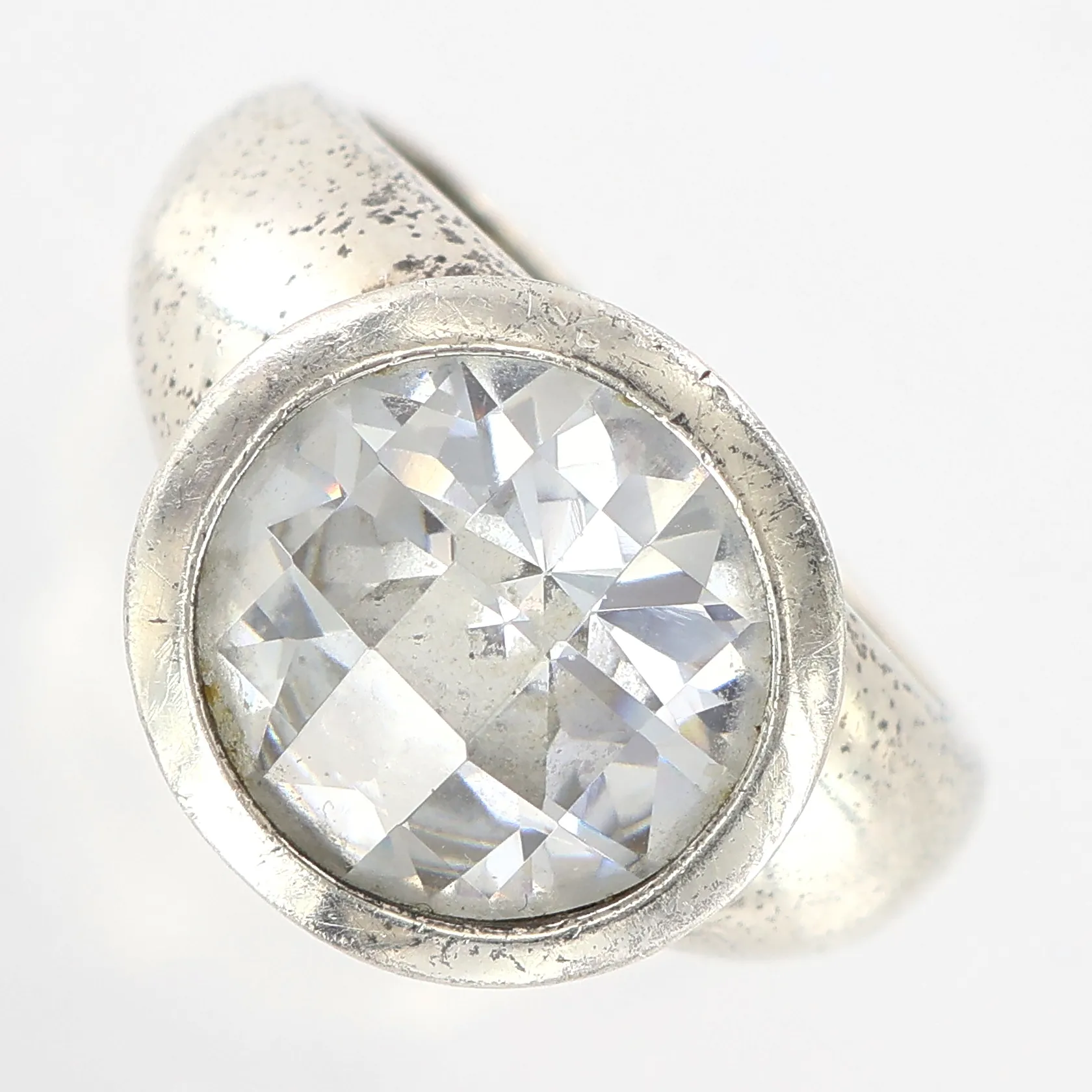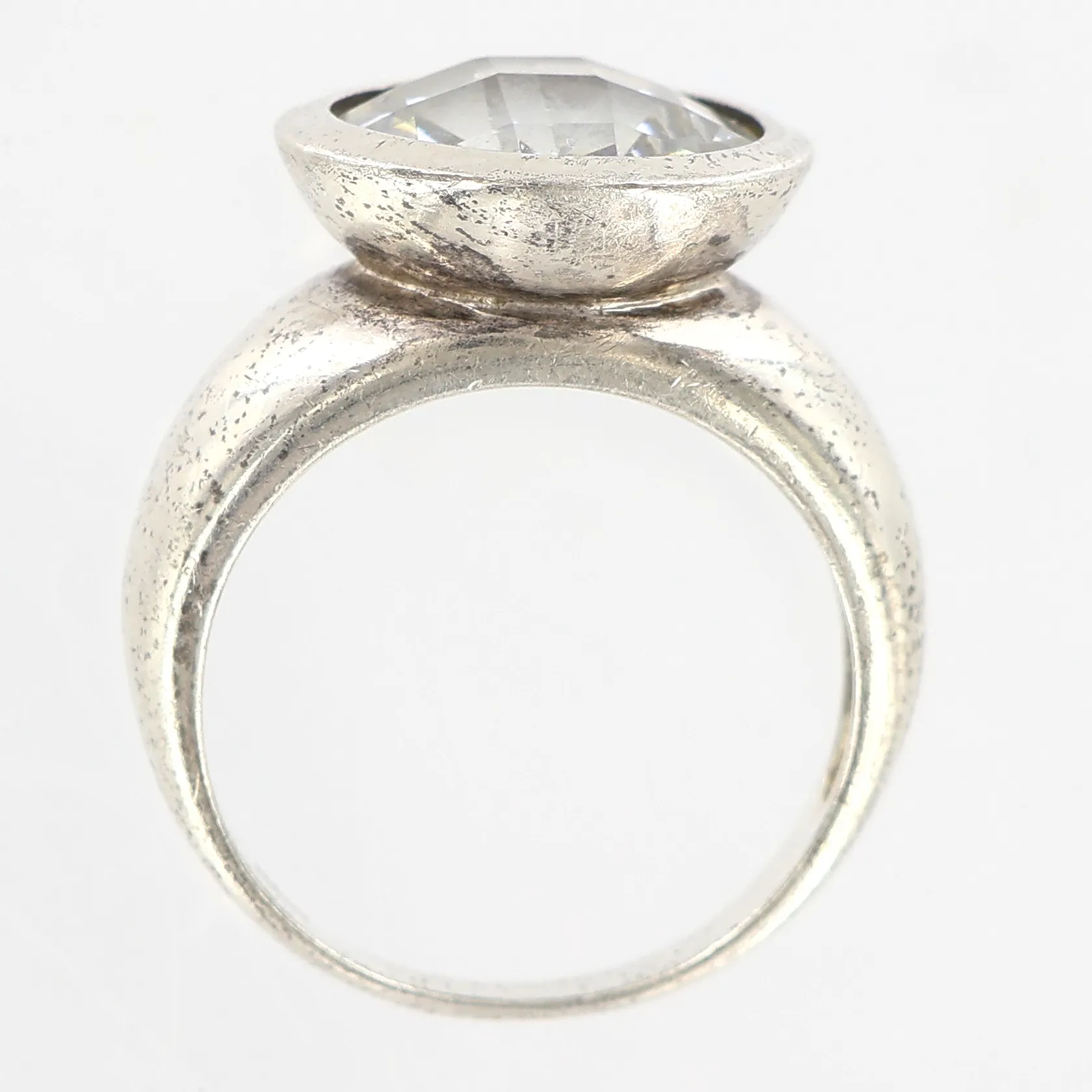 Ring med fasetterad sten, stl 18, bredd: 2-15mm, GHA silver 925/1000 Vikt: 7,7 g.