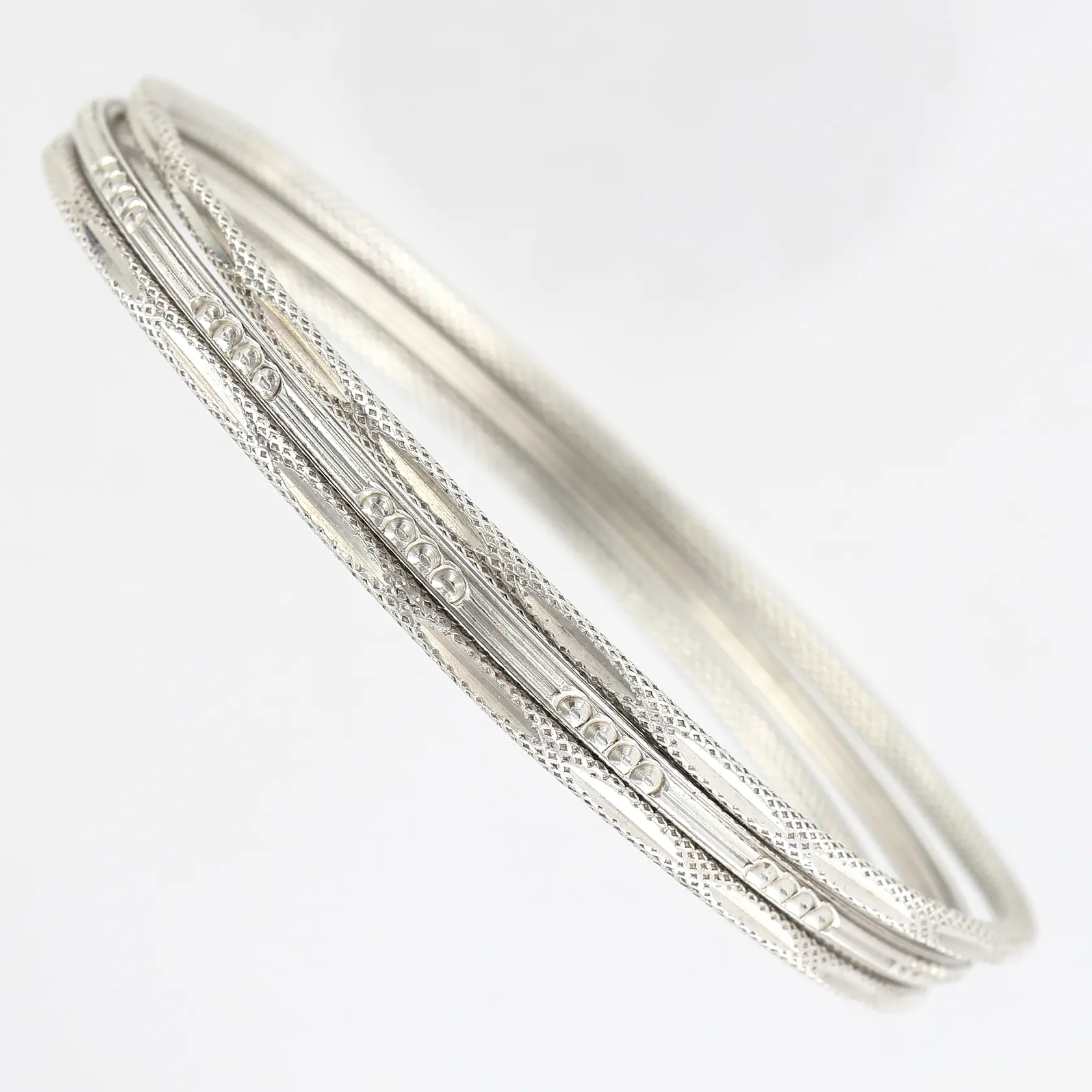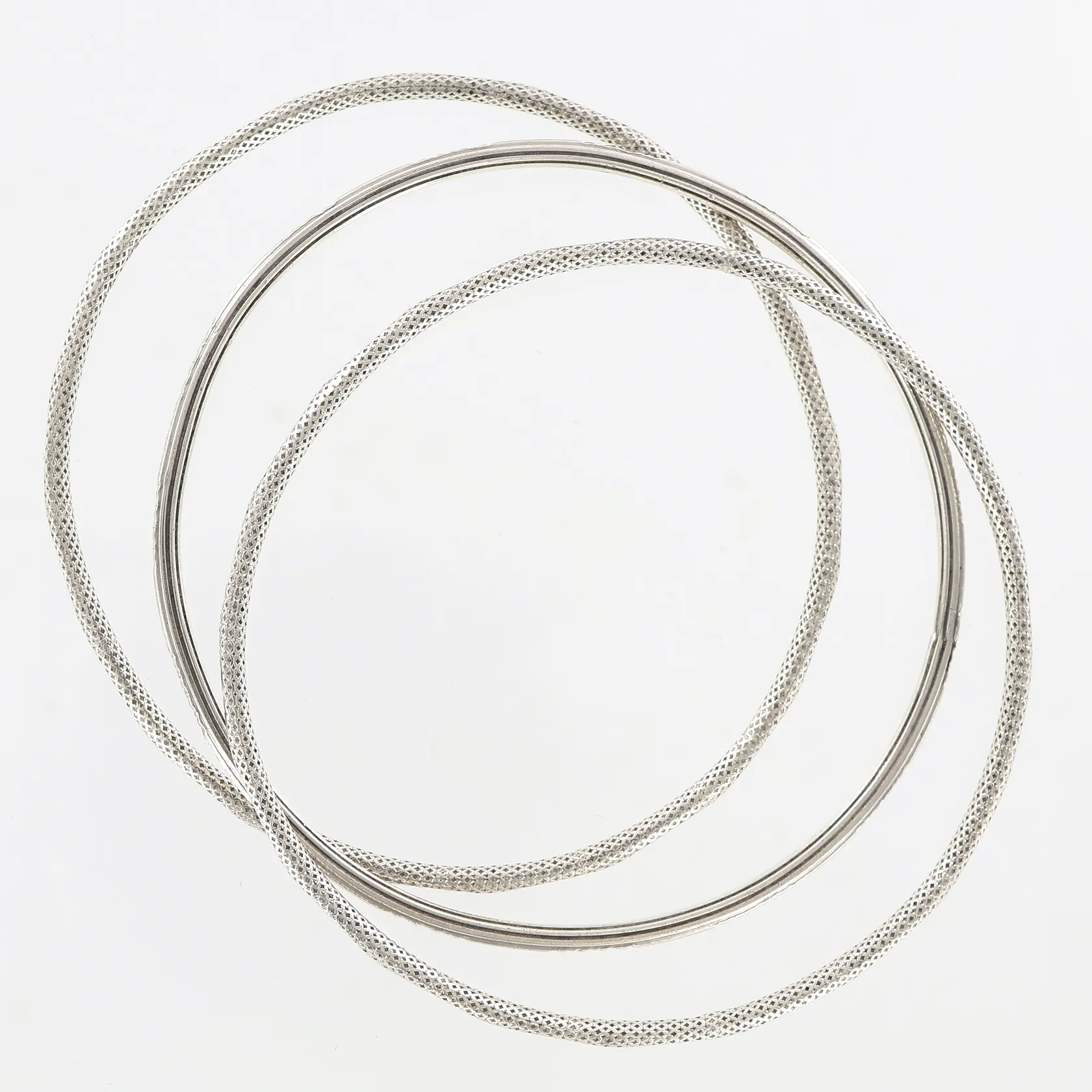 3 armringar, olika mönster, Ø70mm, bredd ca 2,5mm, skeva, 950/1000 Silver Vikt: 28,9 g.