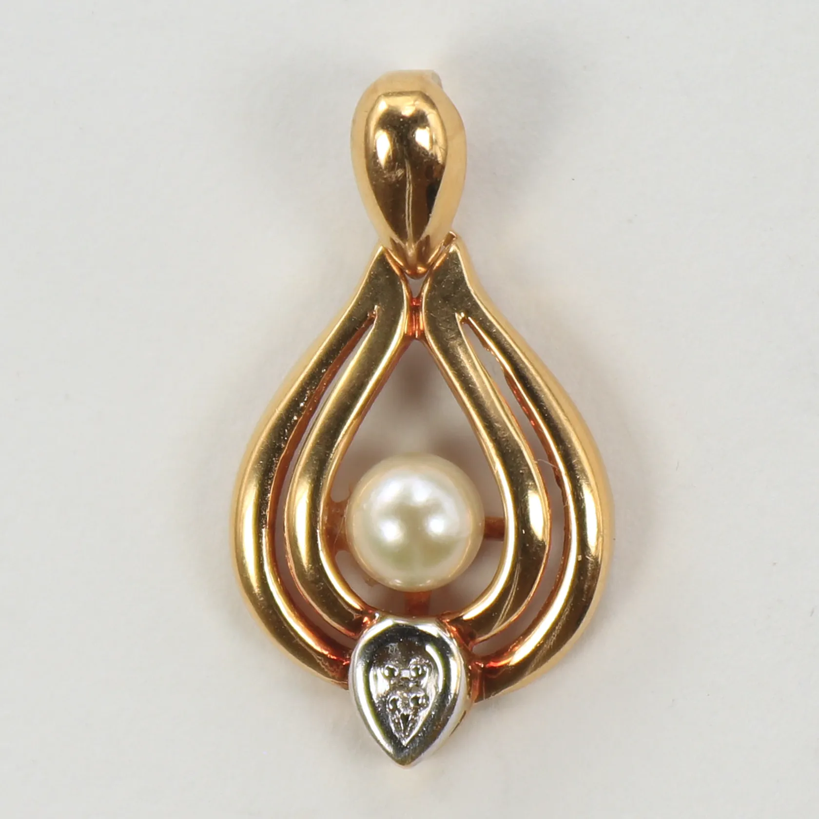 Hänge med vit sten,samt pärla, 22x15mm, 18K, 1,9g Vikt: 1,9 g.