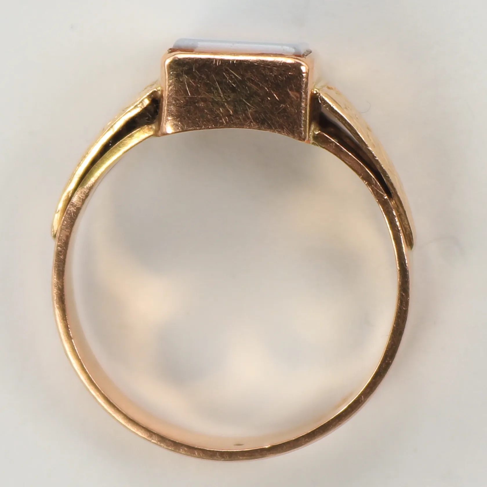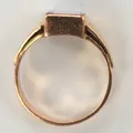 Klackring med vit sten, stl 18, bredd 4-6mm, 14K, 3,9g Vikt: 3,9 g.