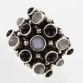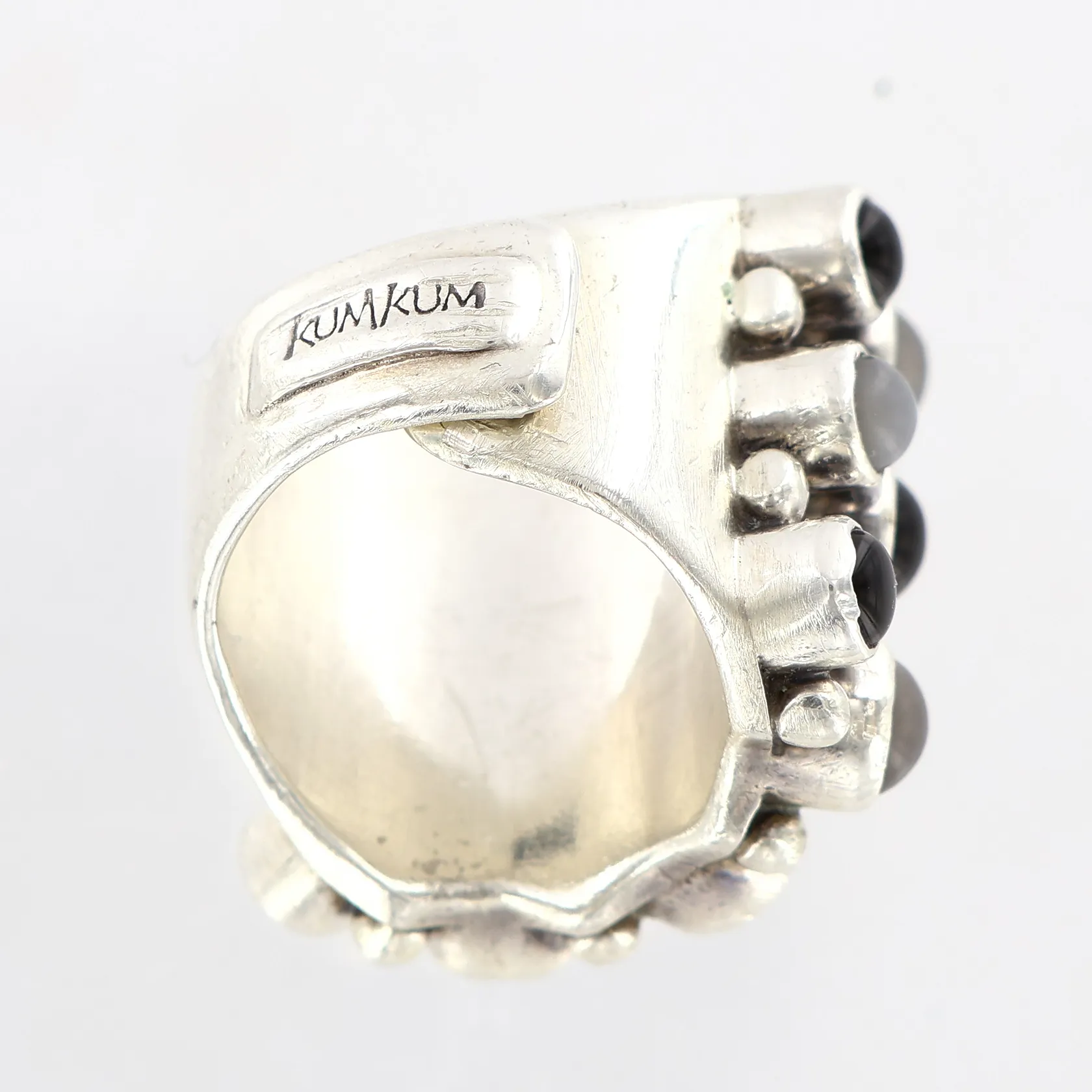 Ring Kum Kum med stenar, stl 14¾, justerbar skena, bredd: 7-22mm, silver 925/1000 Vikt: 23,5 g.