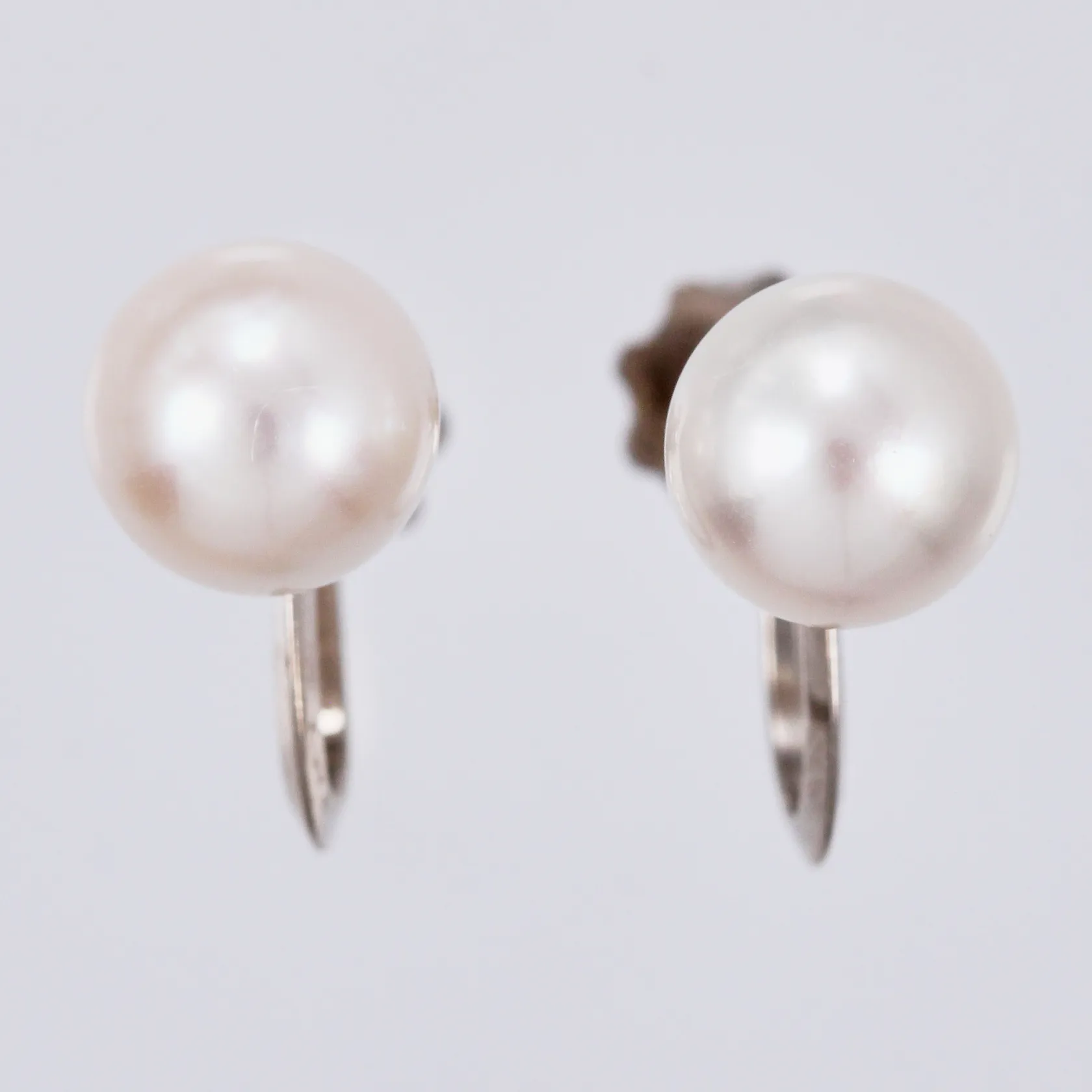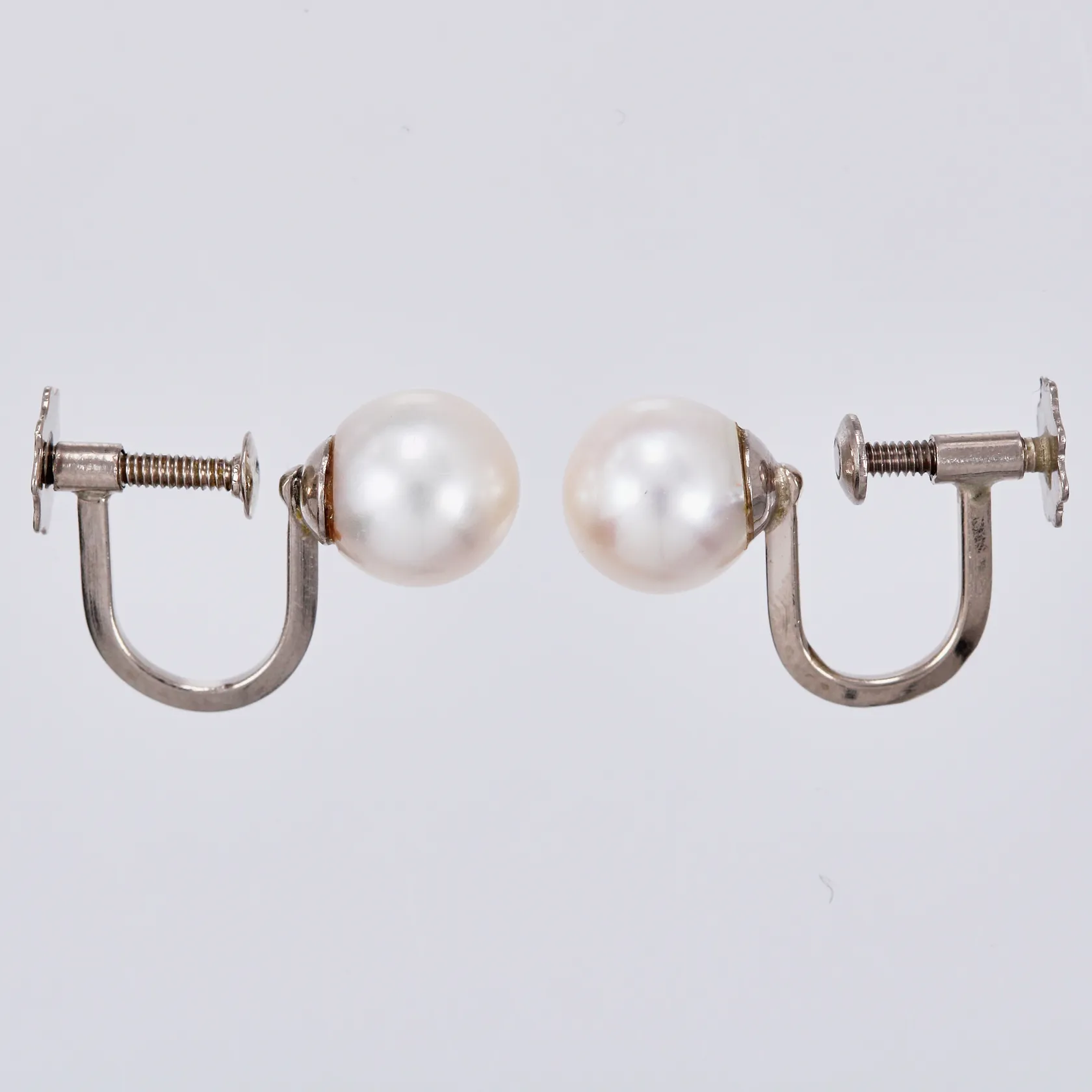 Ett par örhängen med odlade pärlor Ø ca 7,3-7,4mm skruvlås vitguld 18K Vikt: 2,5 g.