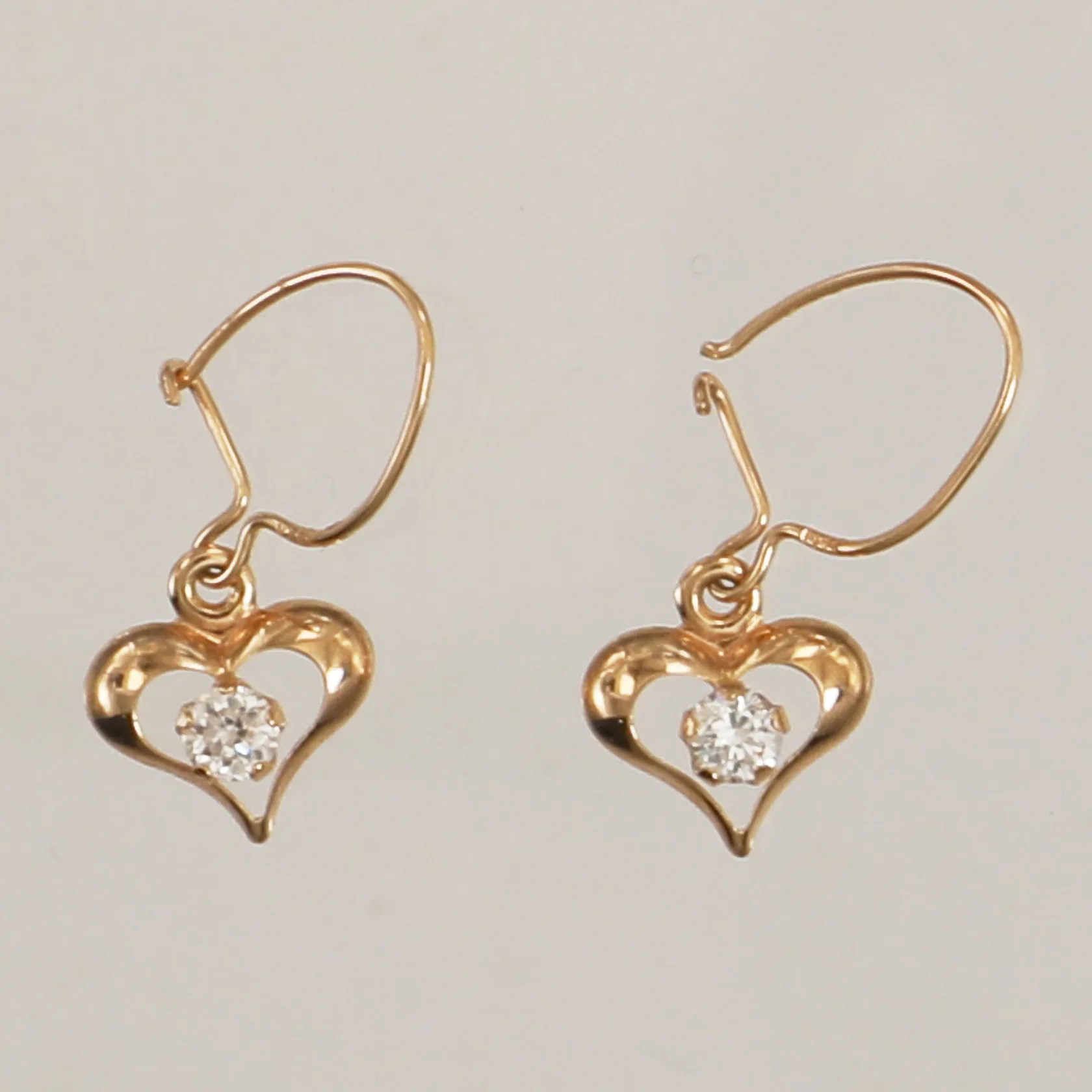 Ett par örhängen hjärtan med stenar, längd 20mm, bredd 9mm, skeva krokar, 18K Vikt: 0,6 g.
