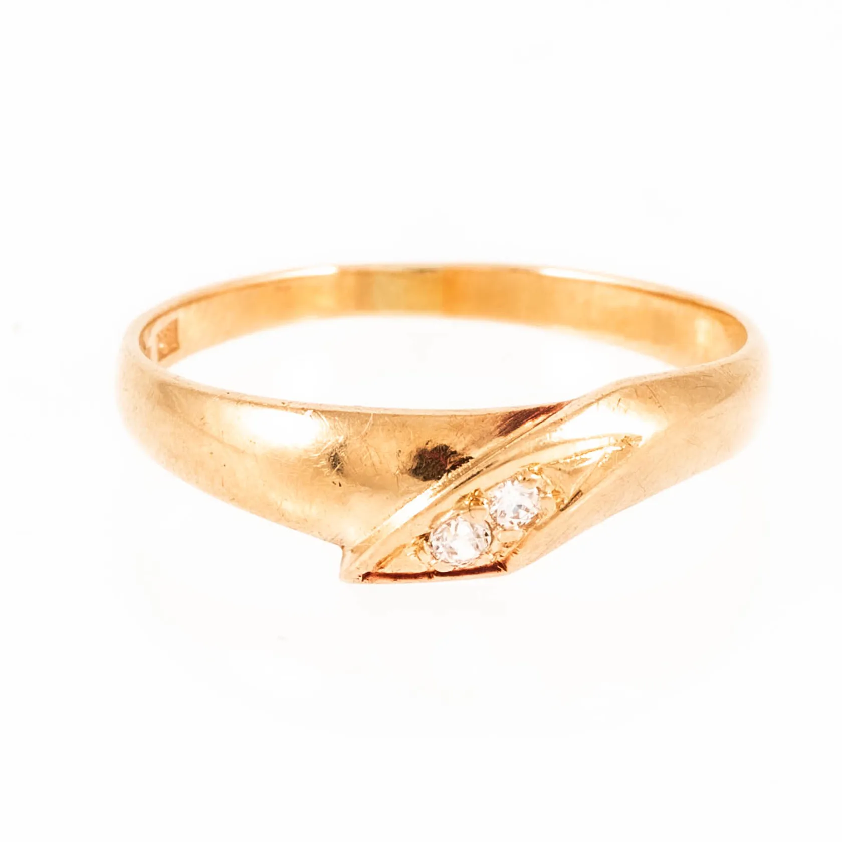 Ring i 18K guld med två vita stenar