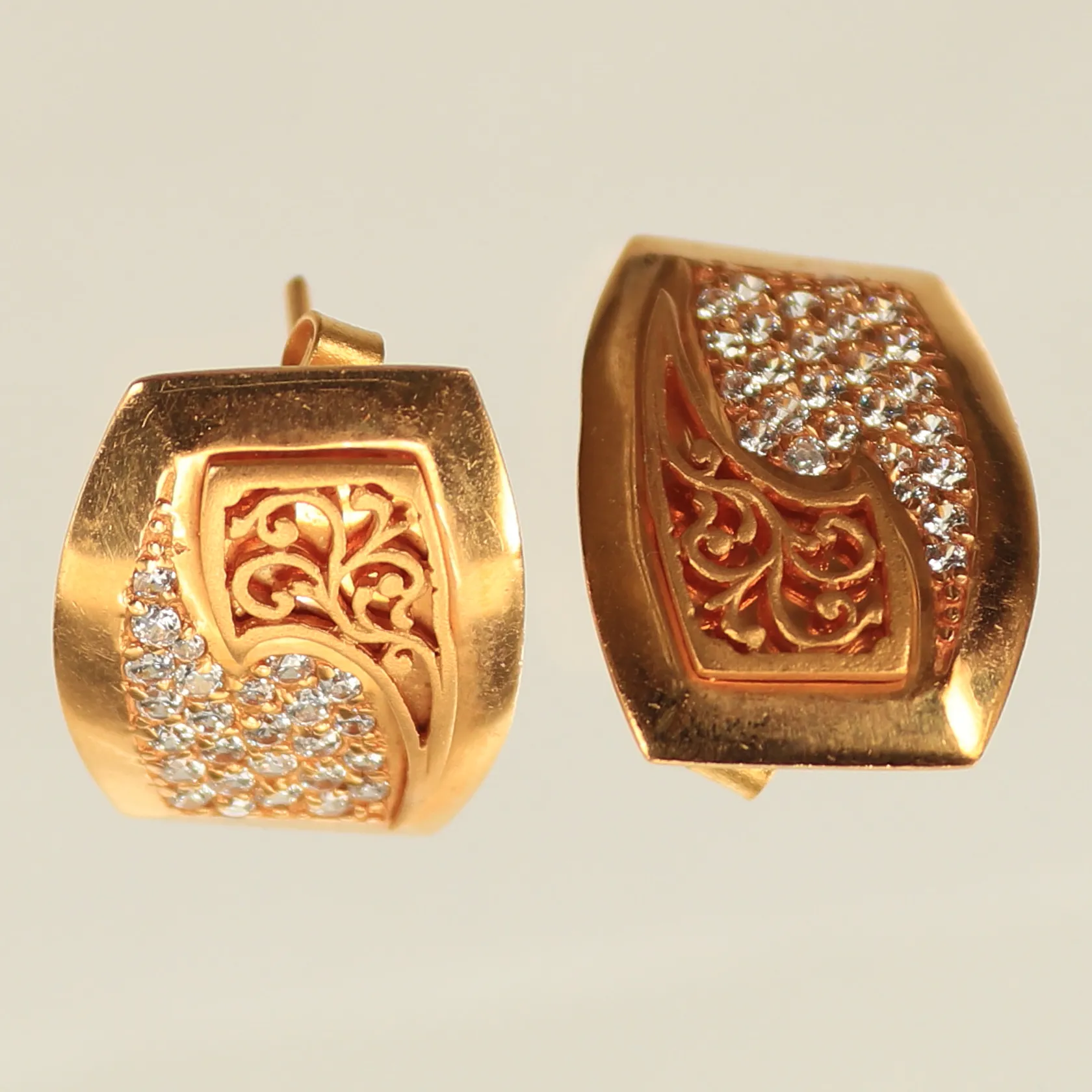 Ett par örhängen med vita stenar, längd ca 21mm, bredd 16mm (ojämna stift) 22K, 11,3g Vikt: 11,3 g.