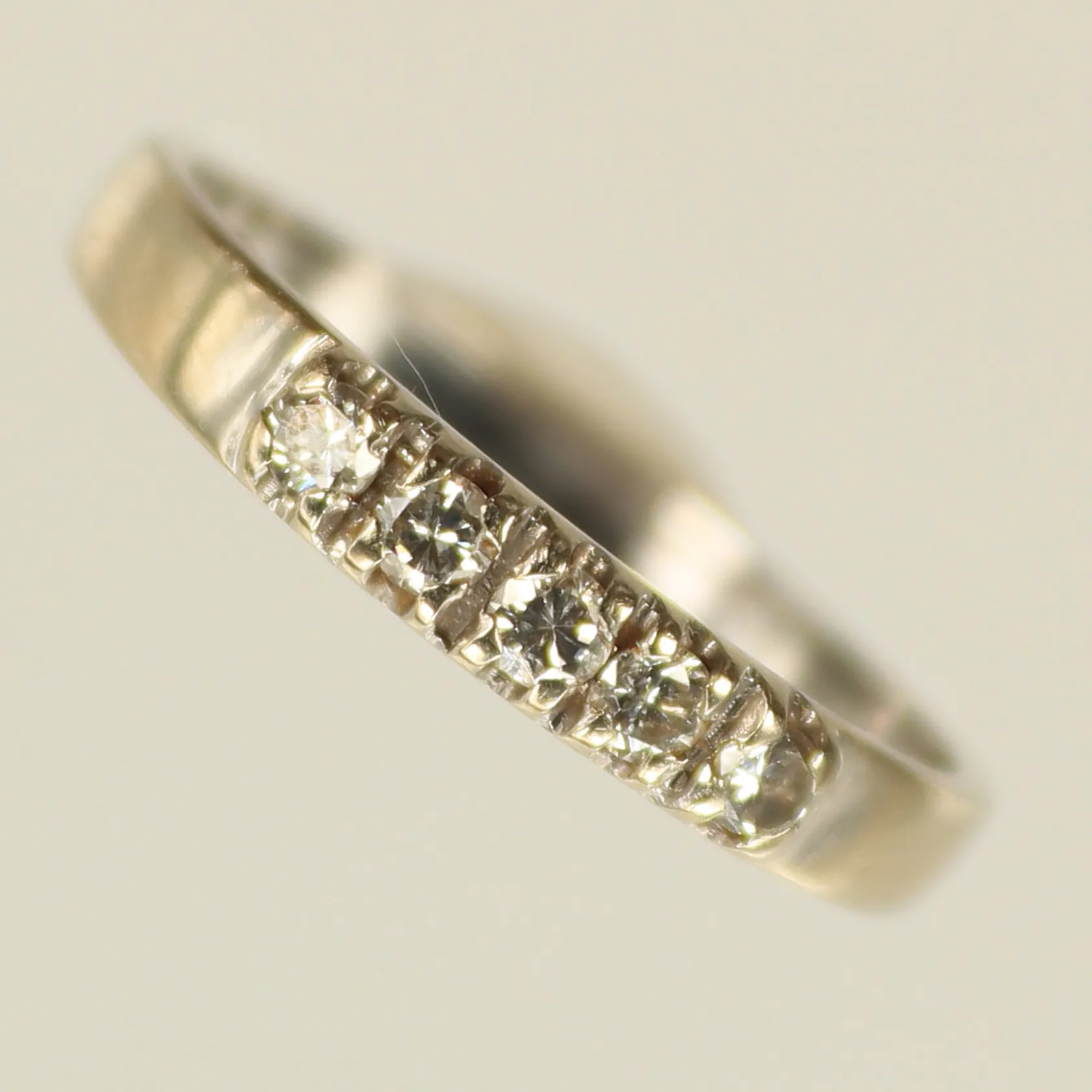 Ring med diamanter totalt ca 0,10ct, stl 18¼, bredd 2mm, vitguld, 18K Vikt: 2,8 g.