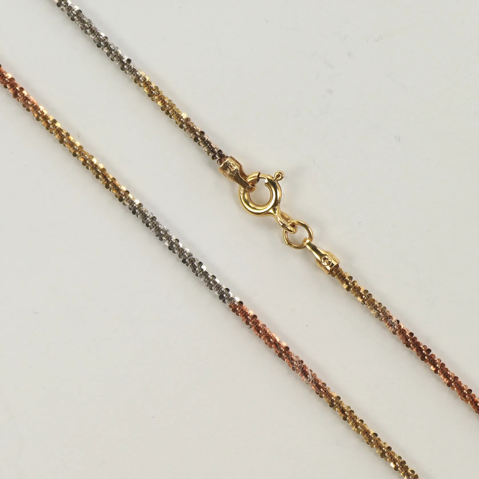 Halskedja, trefärgad, längd 42cm, bredd 1mm, 18K Vikt: 3,6 g.