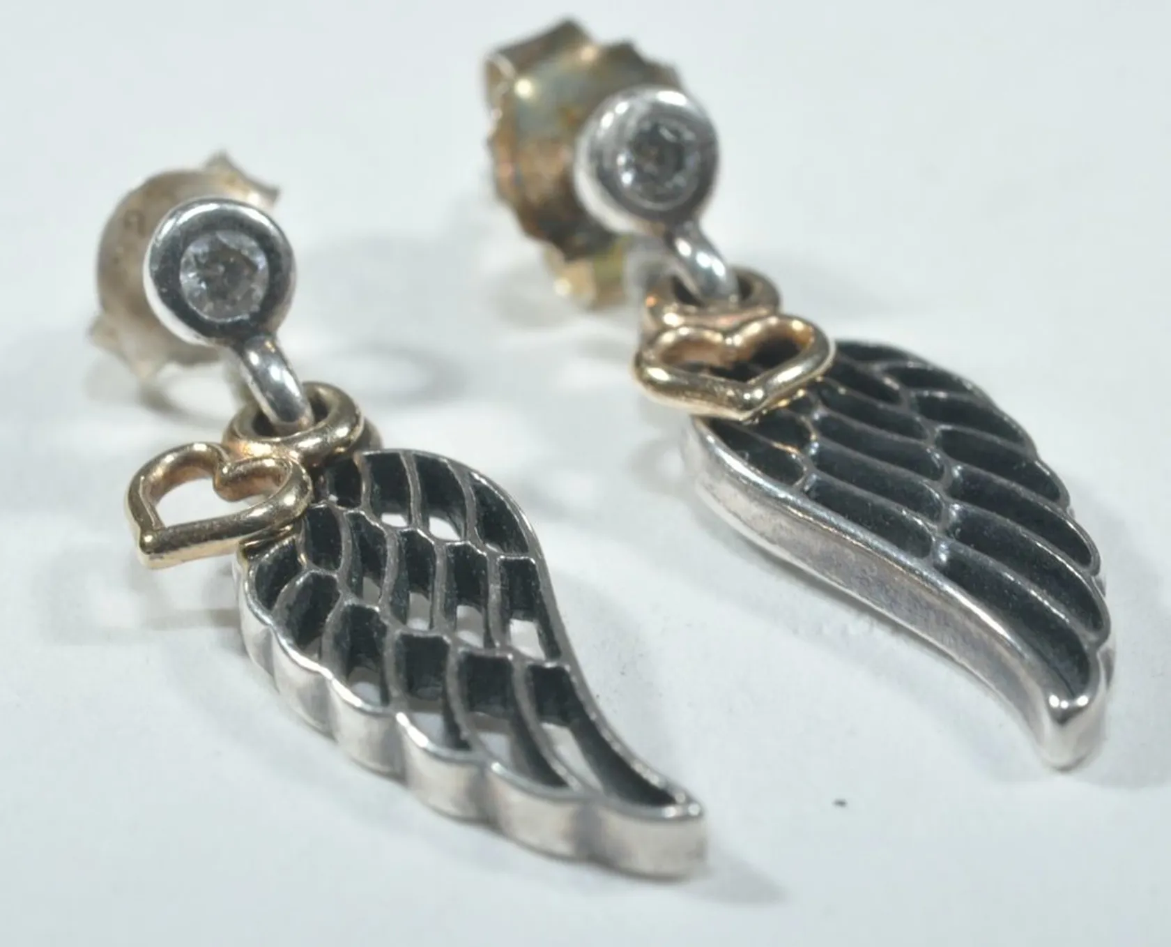 Örhängen vinge silver med guld hjärta , L 2 cm Vikt: 2,5 g.