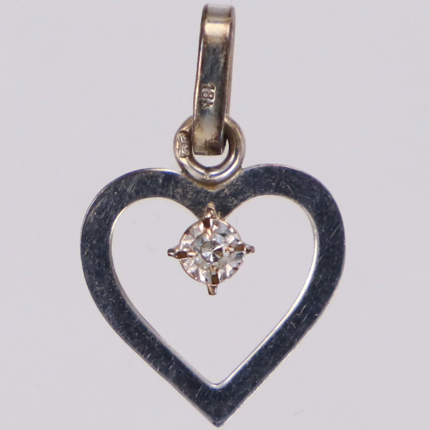 Hänge hjärta med åttkantslipad diamant ca 0,02ct, längd 19,5mm, bredd 12mm, Guldfynd, vitguld 18K Vikt: 0,7 g.