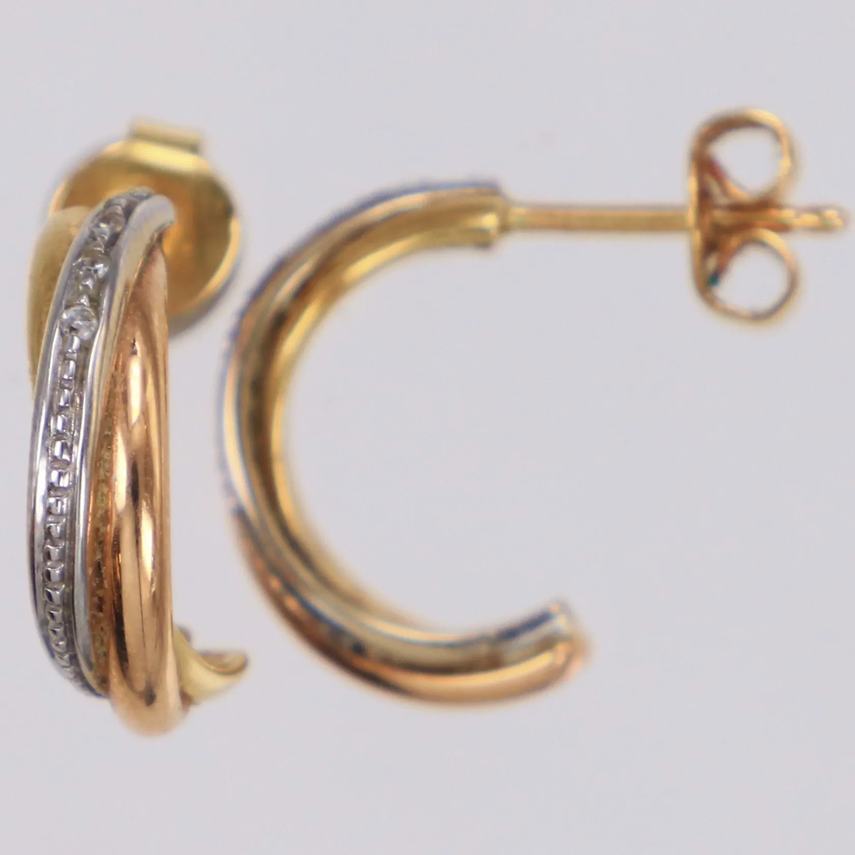 Ett par örhängen med diamanter åttkantslipade diamanter ca 0,04ctv, längd 15mm, bredd 4mm, tvåfärgade, 18K Vikt: 3,9 g.