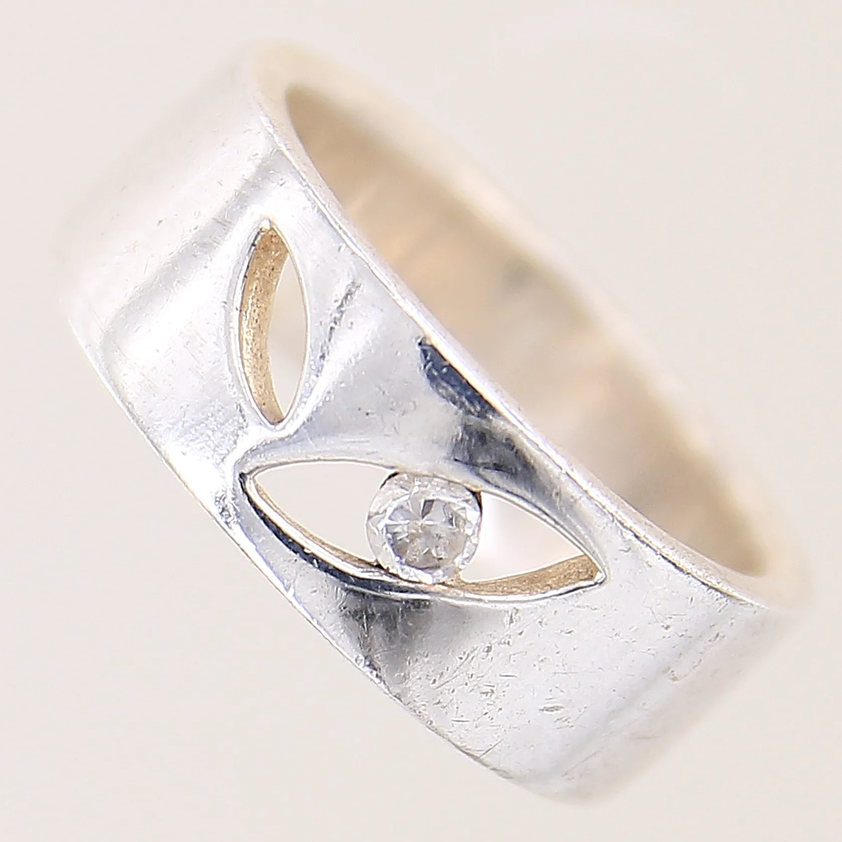 Ring med vit sten samt genombruten dekor, stl 18, bredd 7,8mm, GHA, silver 925/1000 Vikt: 8,8 g.