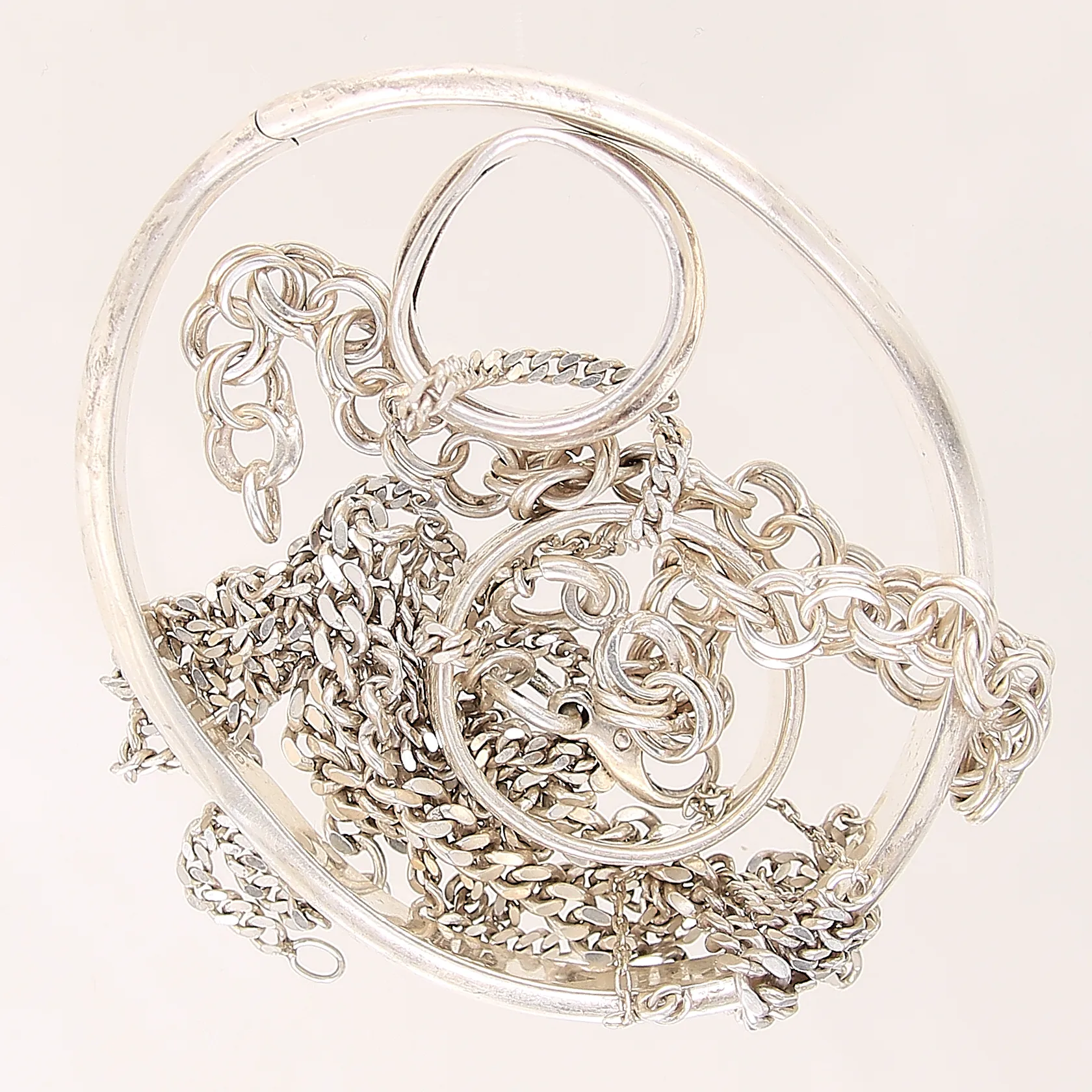 Diverse silversmycken, buckliga,defekta, silver 830-925/1000 Vikt: 59,6 g.