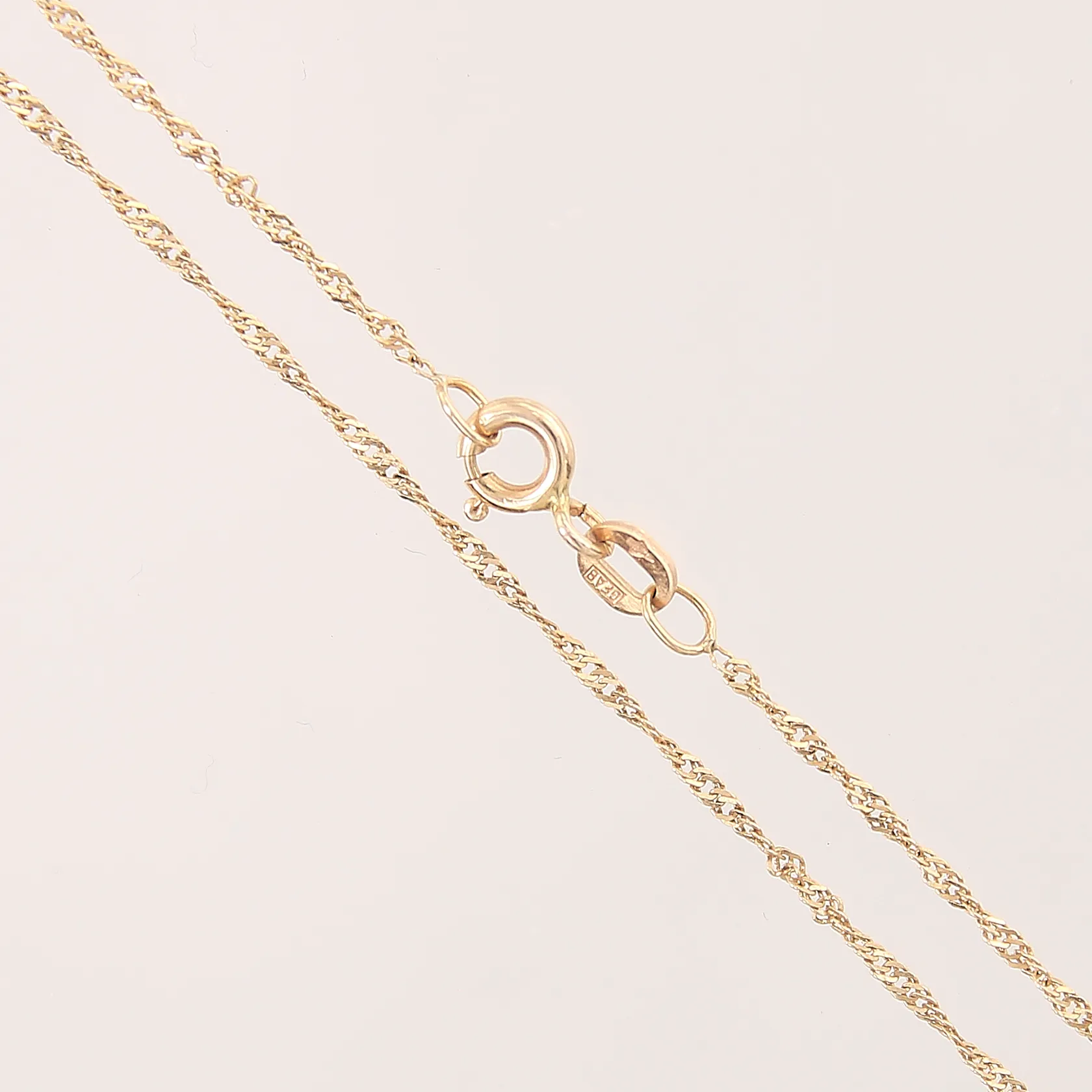 Kedja Singapore, längd: 39cm, bredd: 0,7mm, GFAB, 18K Vikt: 1,3 g.