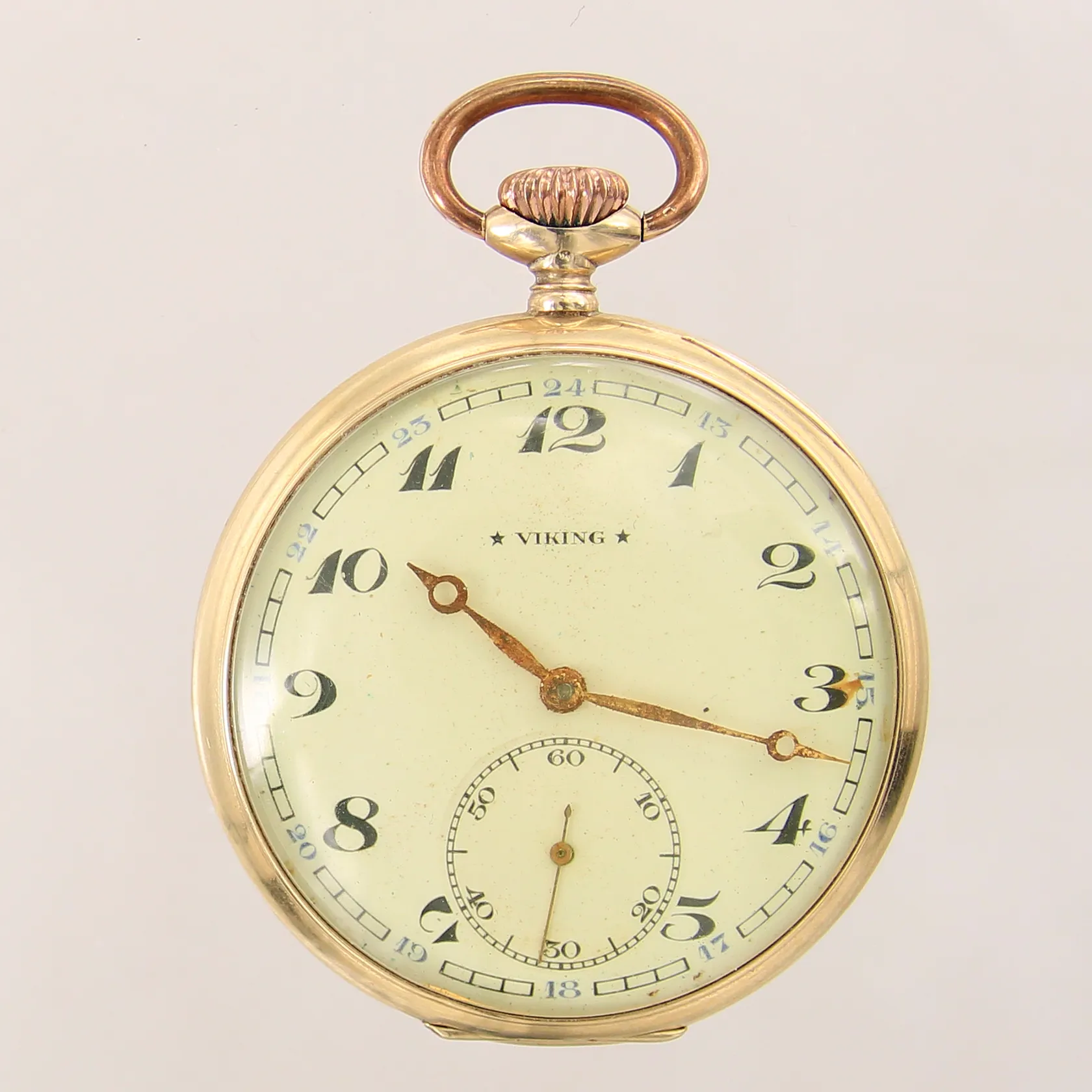 Fickur Viking, 14K, manuell, Ø50mm, boett-nr: 6913, kaliber: 526, liten sekundvisare, innerboett i metall, rost på urtavla samt visare, gravyr, bruttovikt: 78,7g