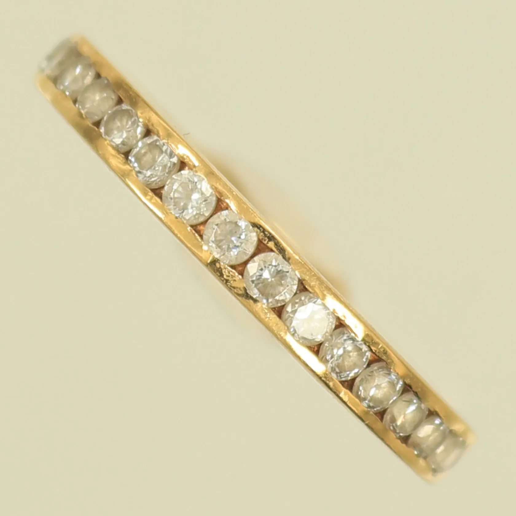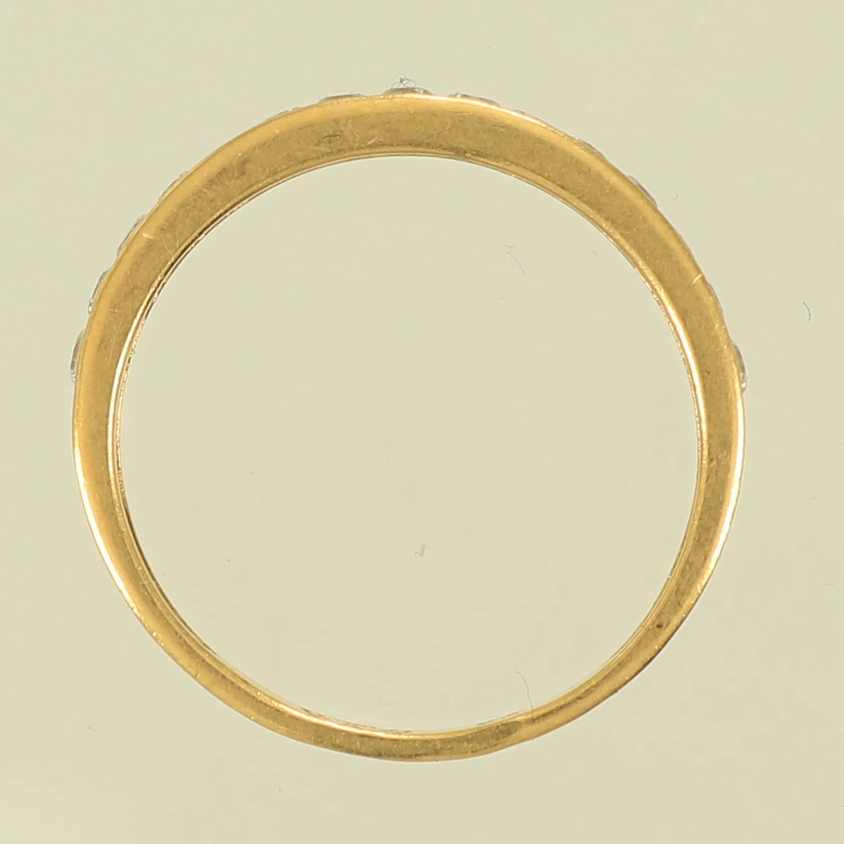 Ring med vita stenar, stl 18¾, bredd 2,7mm, repig, 18K, 2,8g Vikt: 2,8 g.
