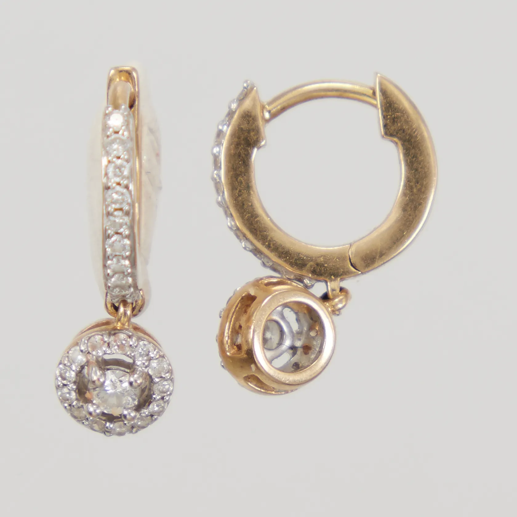 Ett par örhängen med diamanter 2x ca 0,03ct, 46x ca 0,005ct, Ø ca 8mm, längd inklusive hänget ca 15mm, GHA, 18K Vikt: 2,3 g.