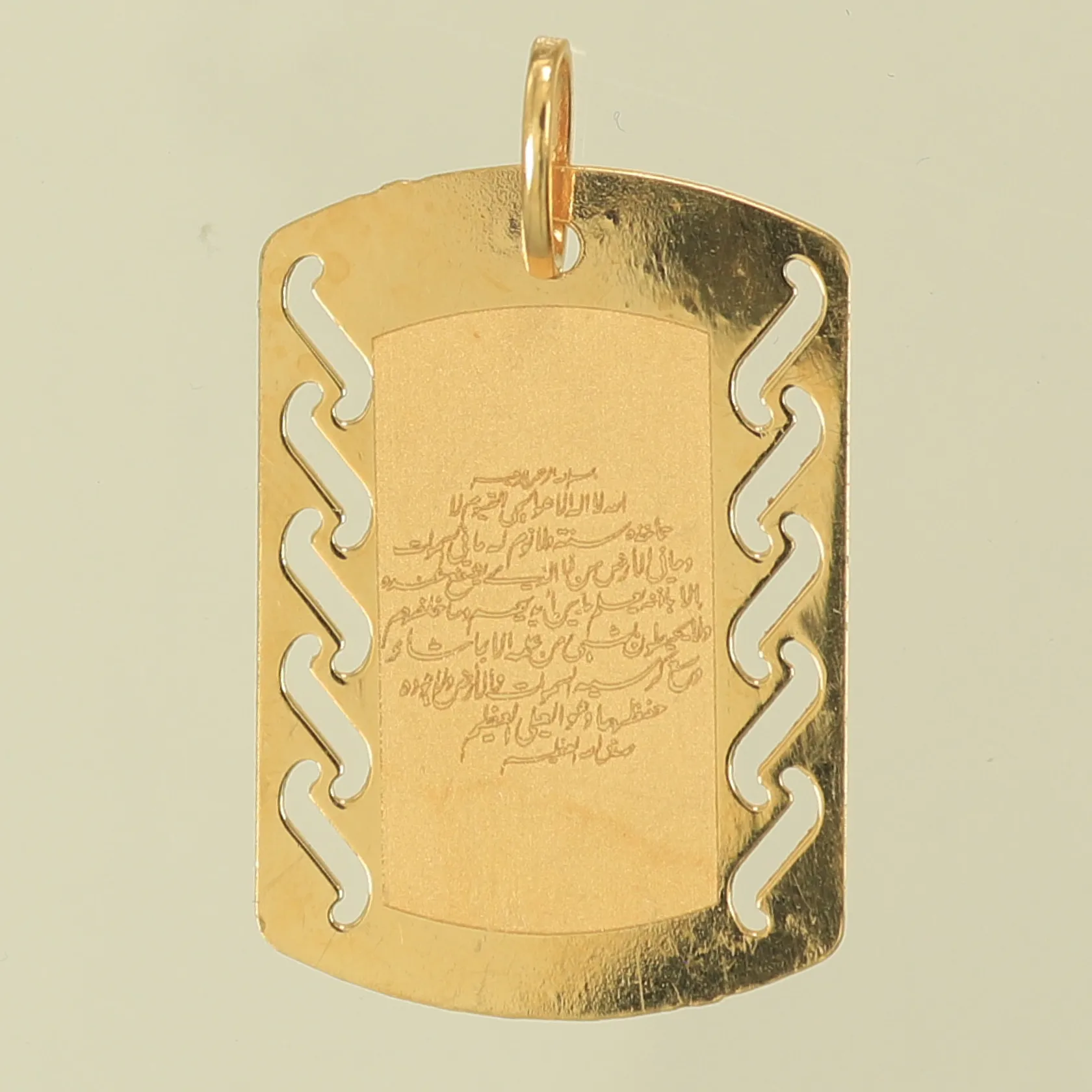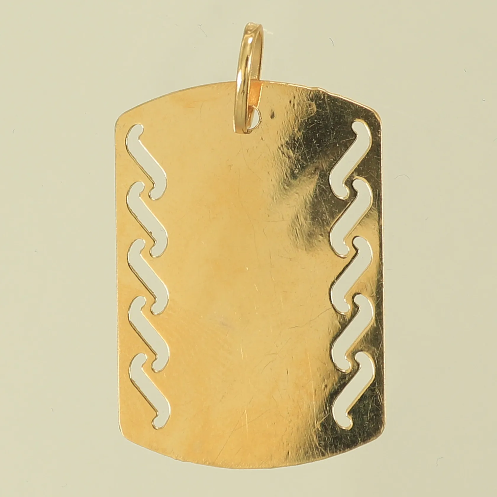 Hänge med text, 34x20mm inklusive hängöglan, 18K Vikt: 3,4 g.