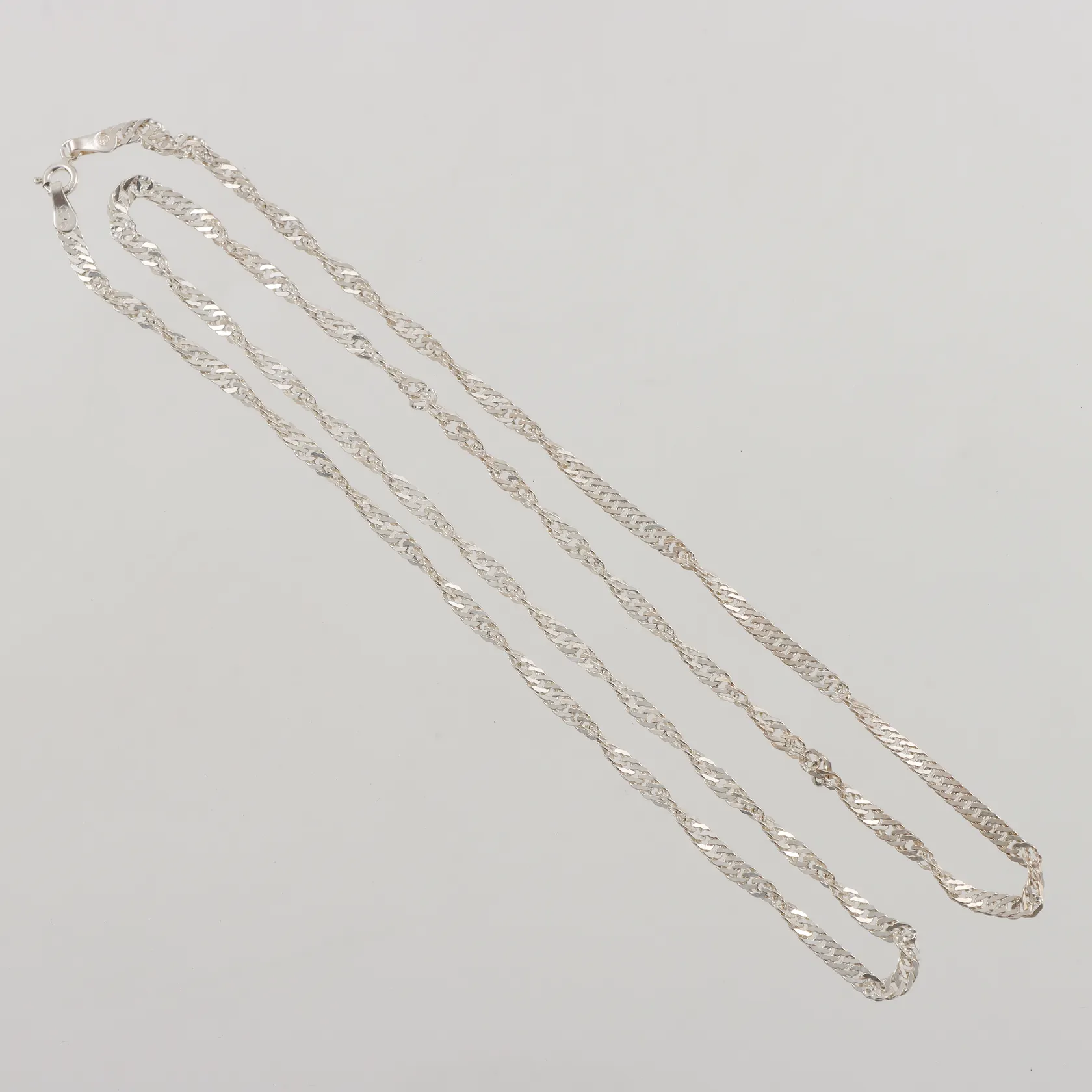Kedja Singapore, 65cm, bredd: 3mm, 925/1000 silver, 7,4g. Vikt: 7,4 g.