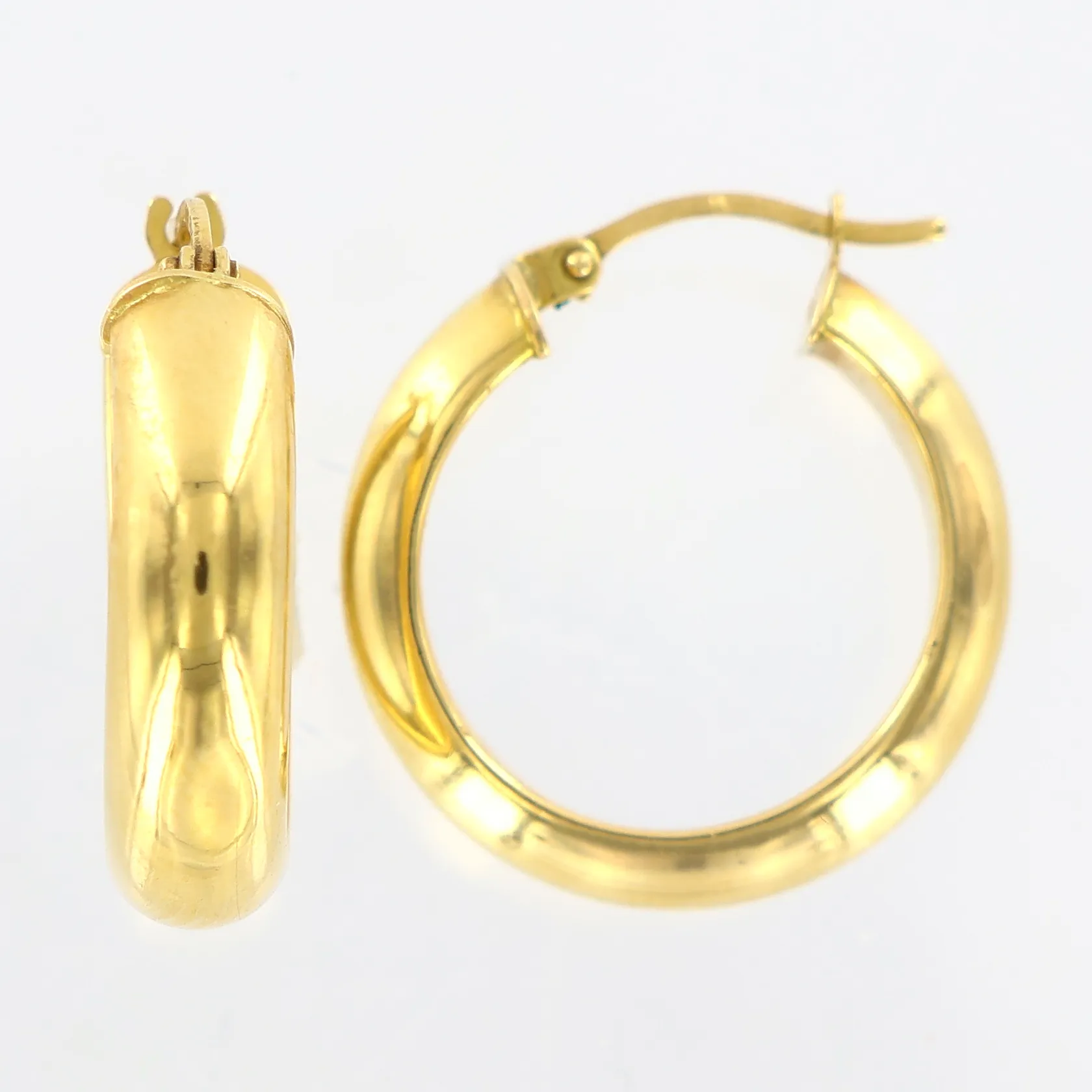 Ett par örhängen creoler Ø15mm, bredd 5mm, ihålig, buckla, 18K. Vikt: 2,2 g.