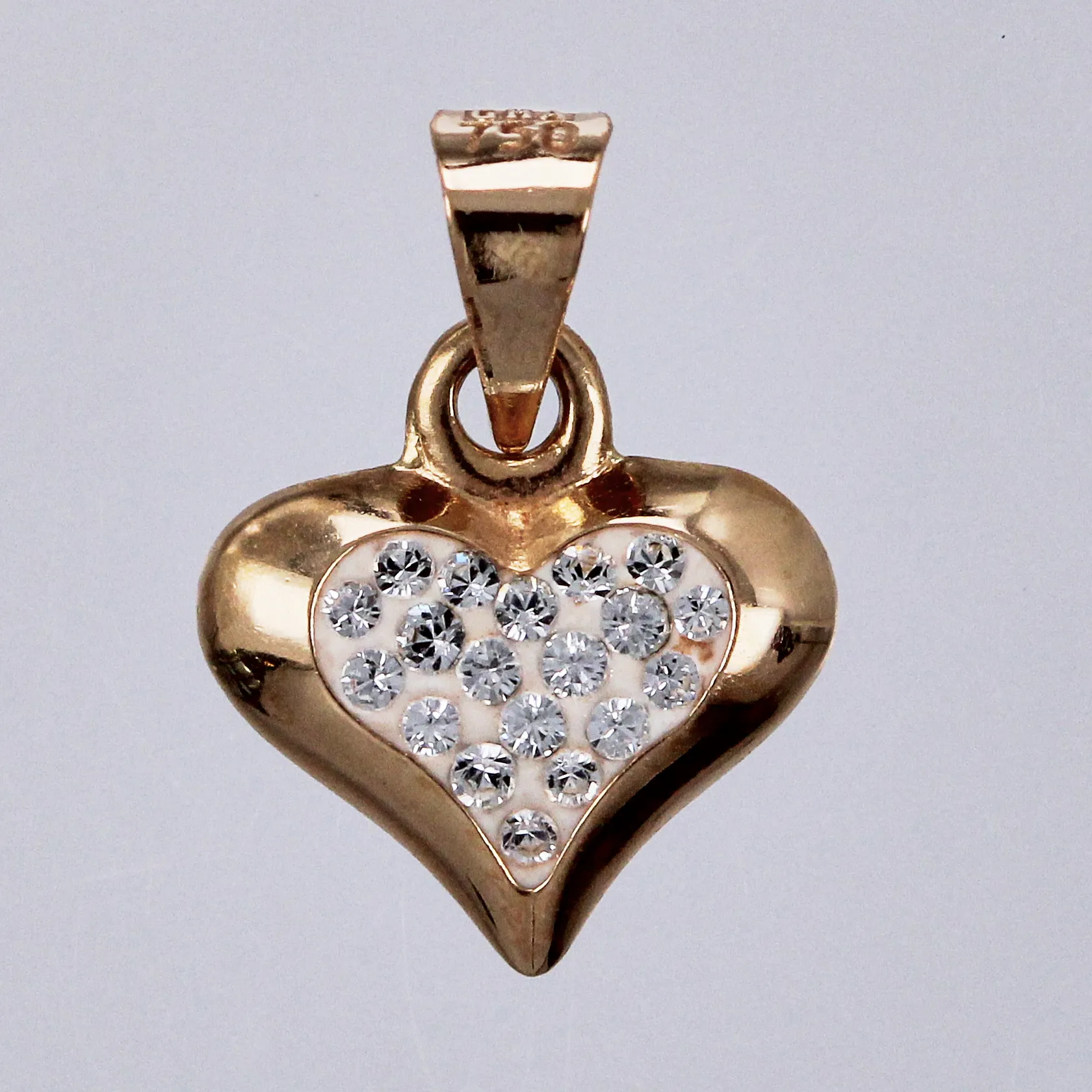 Hänge med vita stenar & plastmassa, längd ca 12mm, bredd ca 9mm, 18K Vikt: 0,2 g.