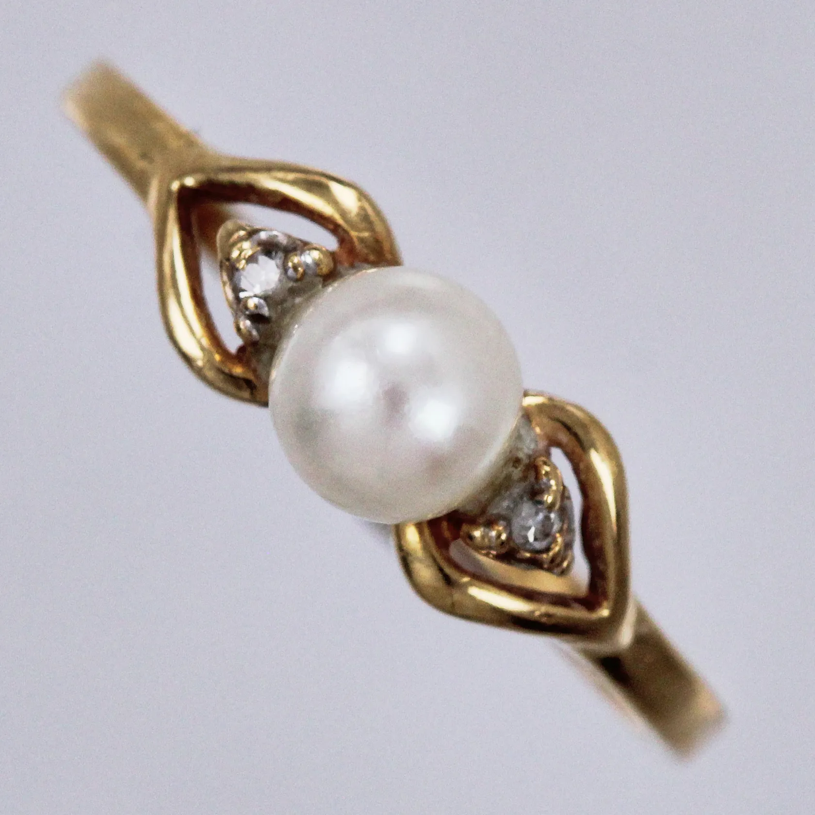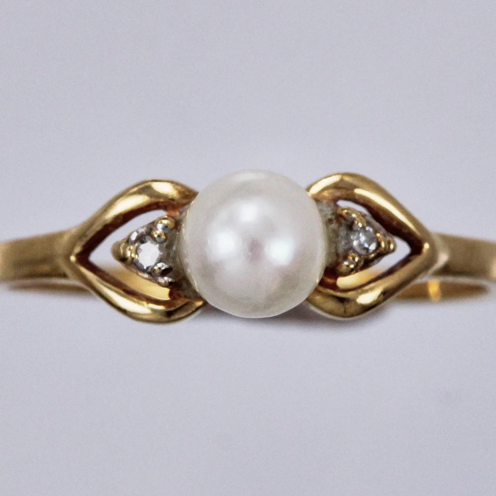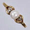 Ring med odlad pärla Ø 5mm, samt diamanter ca 1x0,01ct, GEWE svensk importstämpel, stl: 16½, 18K Vikt: 1,3 g.