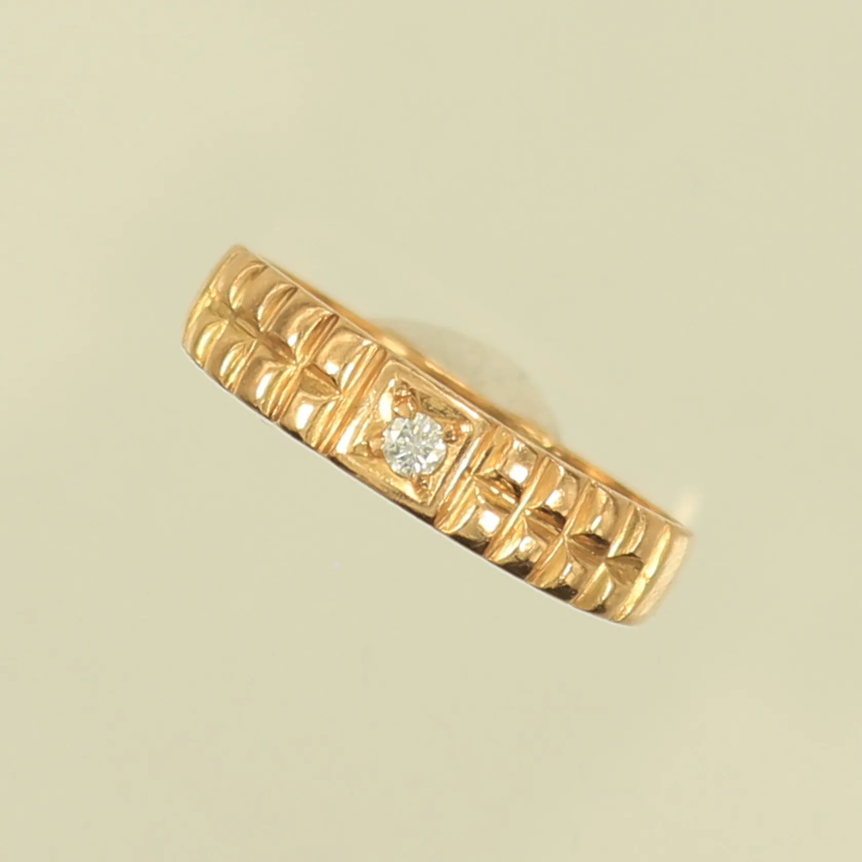 Ring med diamant, ca 0,04ct enligt gravyr, stl 17¼, bredd 3-4mm, 18K, 2,6g Vikt: 2,6 g.