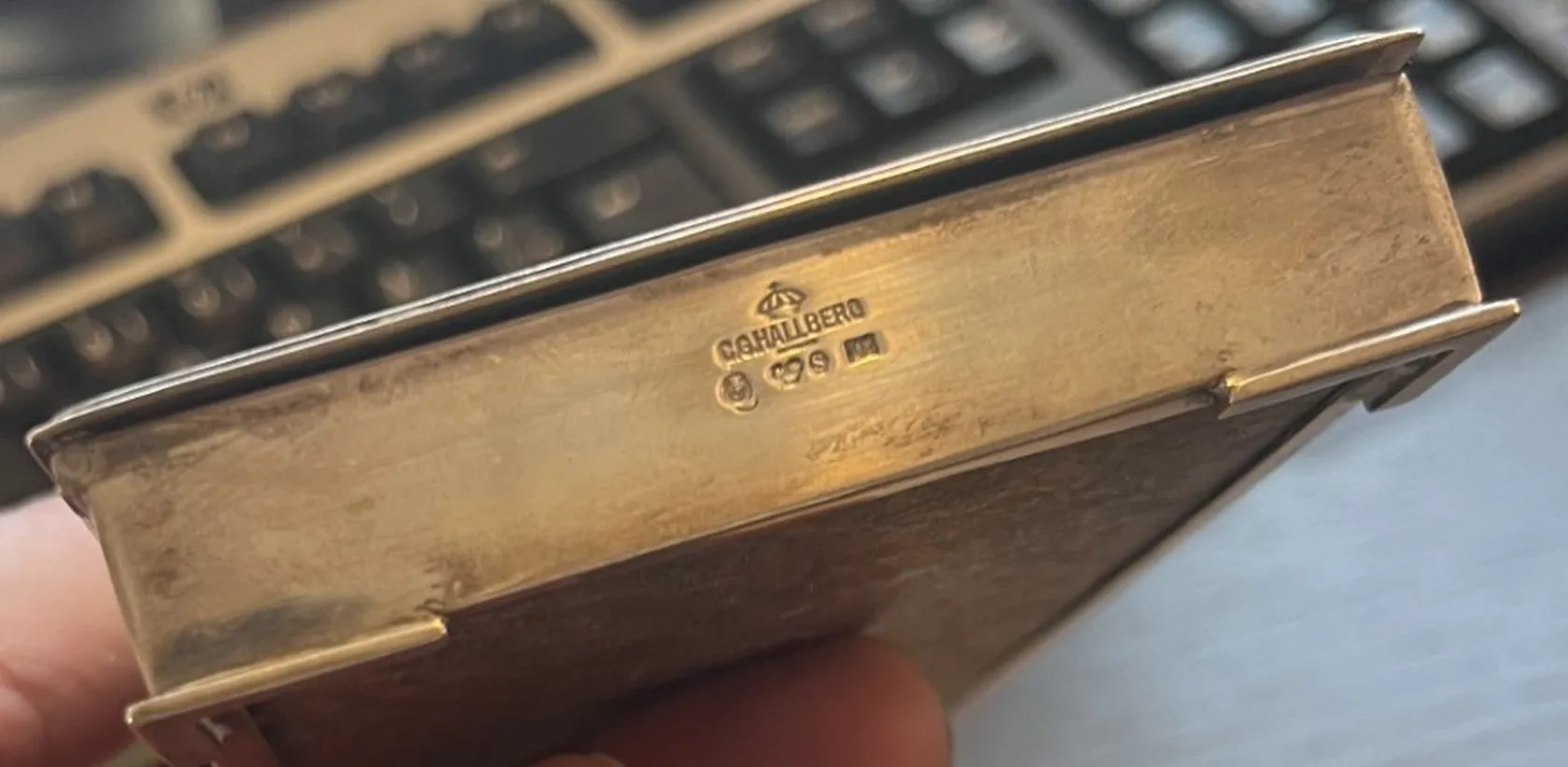 Cigarettetui CG Hallbergs Skrivbordsmodell 663gr 22,5cm x8,5cm Vikt: 663 g. Skickas med postpaket.