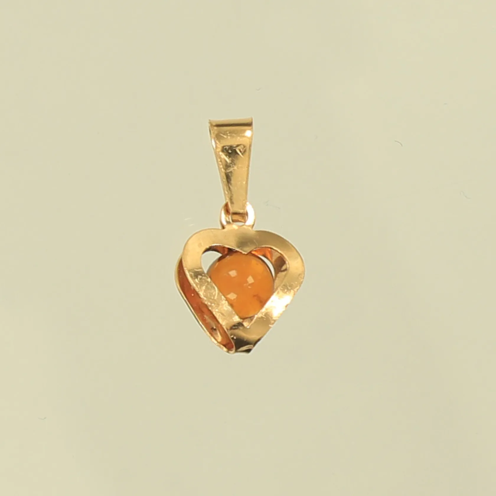 Hänge, hjärta med brun sten, längd 16mm inkl ögla, bredd 9mm, repig, 18K, 0,6g Vikt: 0,6 g.