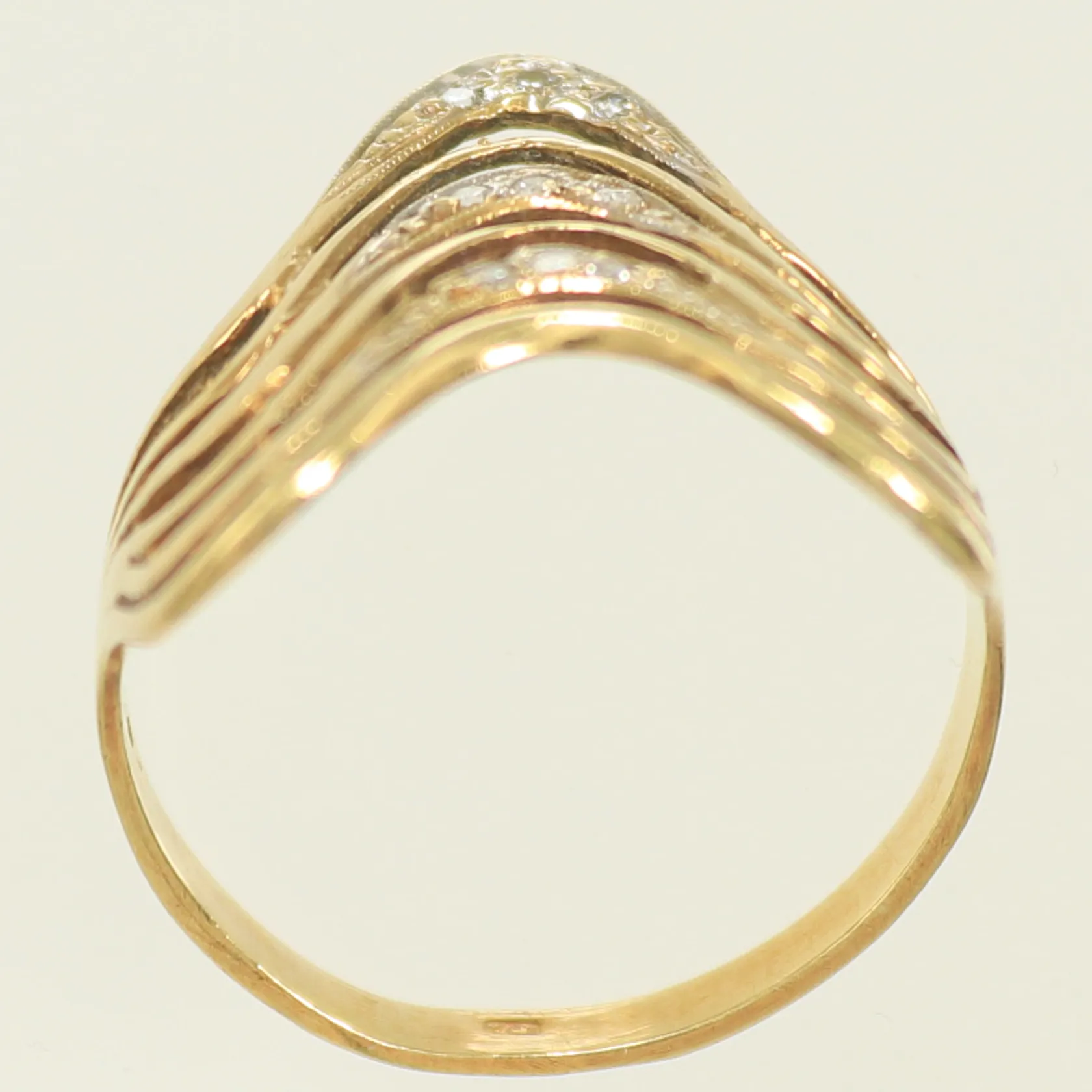 Ring med vita stenar stl 18¾, bredd 3-19mm, 14K, 3,1g Vikt: 3,1 g.