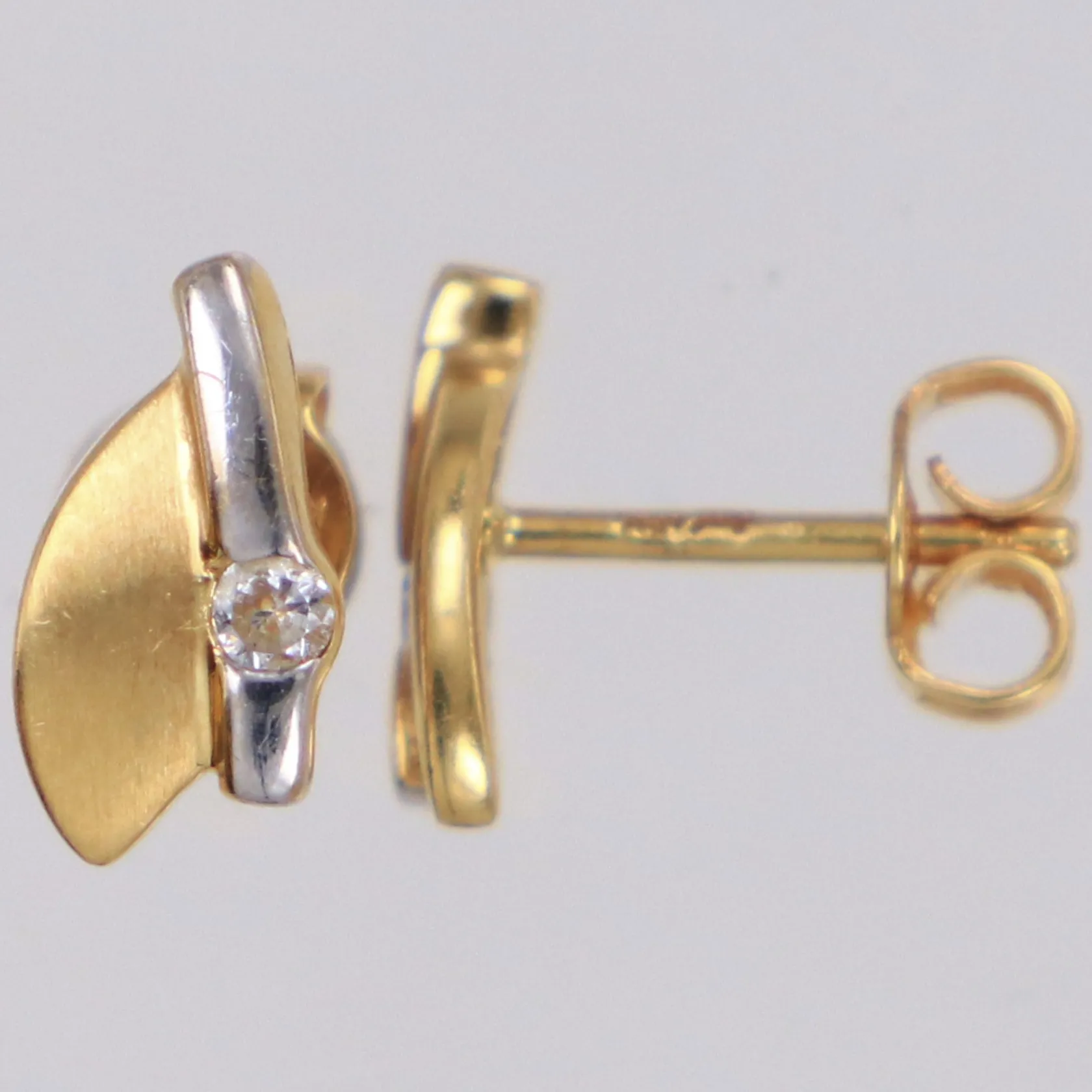Ett par örhängen med vita stenar, längd 10mm, bredd 5,2mm, tvåfärgade, 18K Vikt: 1,6 g.