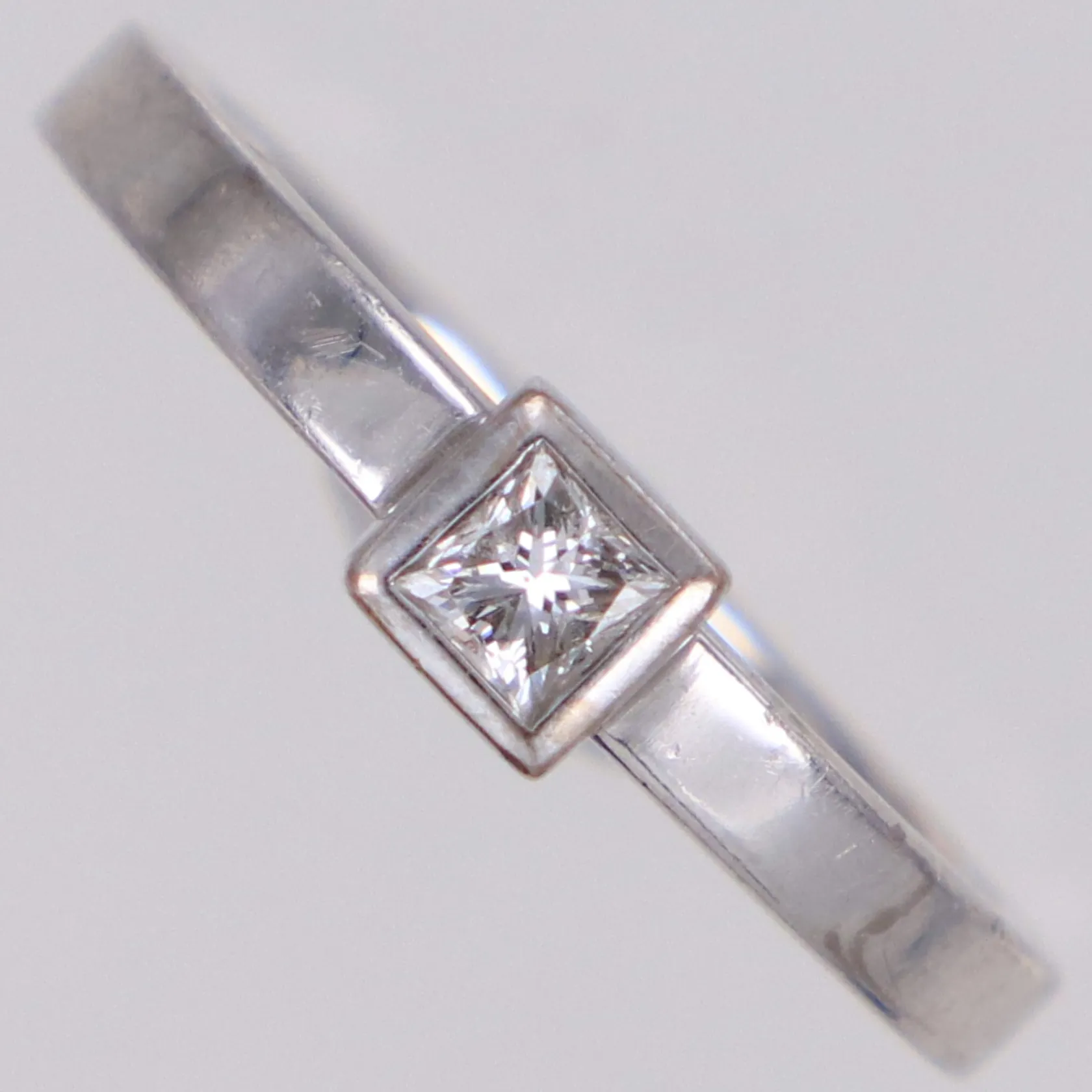 Ring med princesslipad diamant 1xca0,20ct, stl 17¼, bredd 2,5-4,5mm, vitguld, Schalins, gravyr, 18K Vikt: 4,6 g.