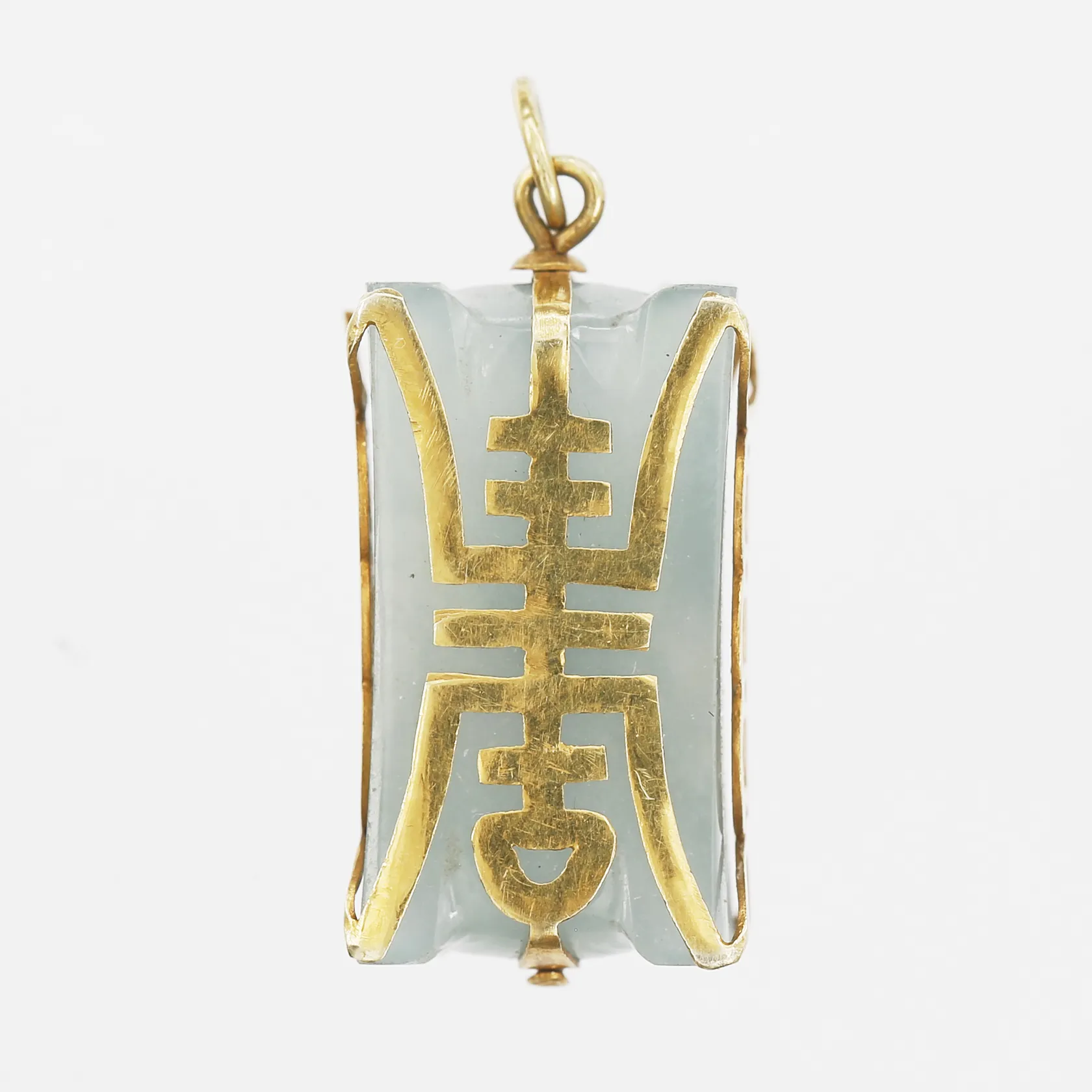 Hänge med nefrit, höjd inkl. ögla: 31mm, bredd: 12, djup: 9mm, 14K guld Vikt: 7,9 g.