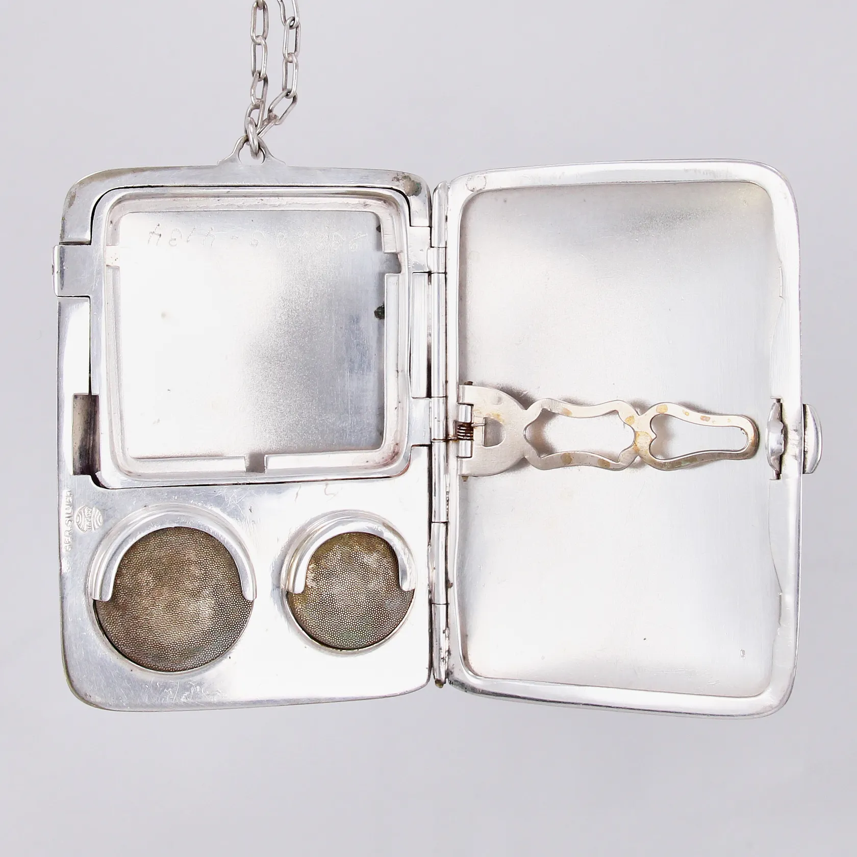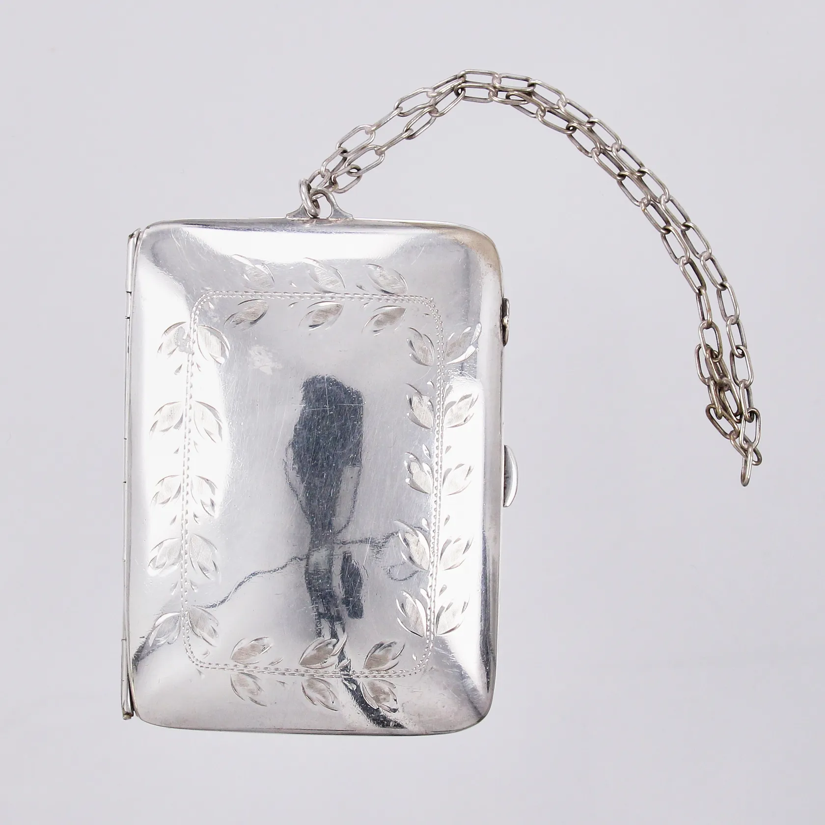 Etui med kedja, längd: ca 7cm, bredd: ca 5,3cm, metall Vikt: 59,9 g.