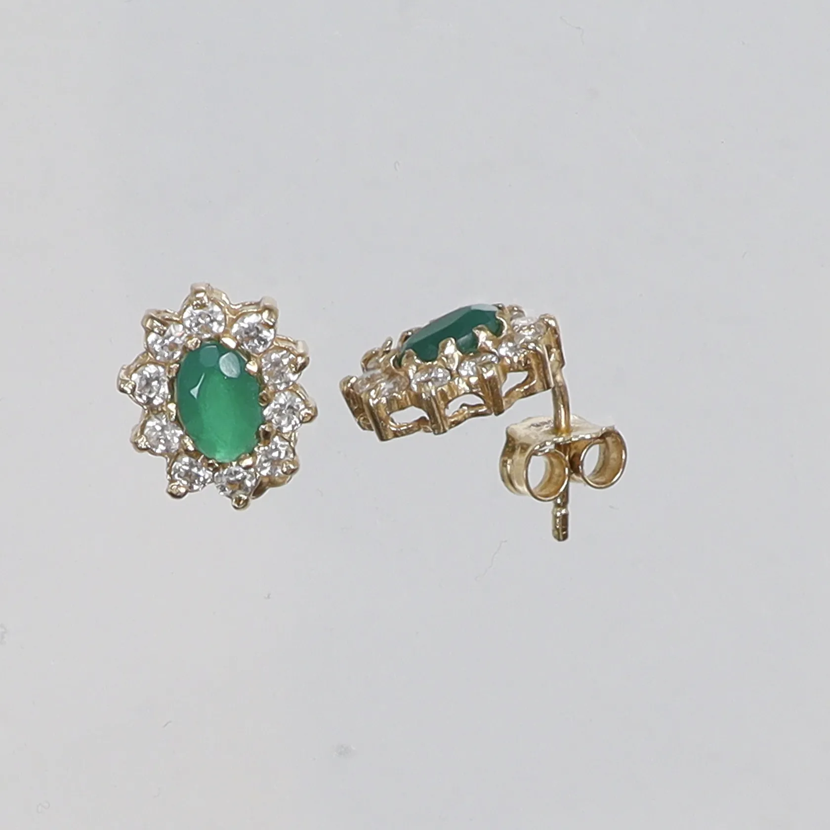 Ett par Örhängen i carmosé med gröna samt vita stenar 9x10mm 14K Vikt: 2,5 g.