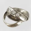 Ring tredelad med diamanter, ca 3x0,16, stl 16¼, bredd ca 7mm, Rey Urban, Stockholm, repor. 18K, platina samt 925/1000 silver, bruttovikt 25,6g