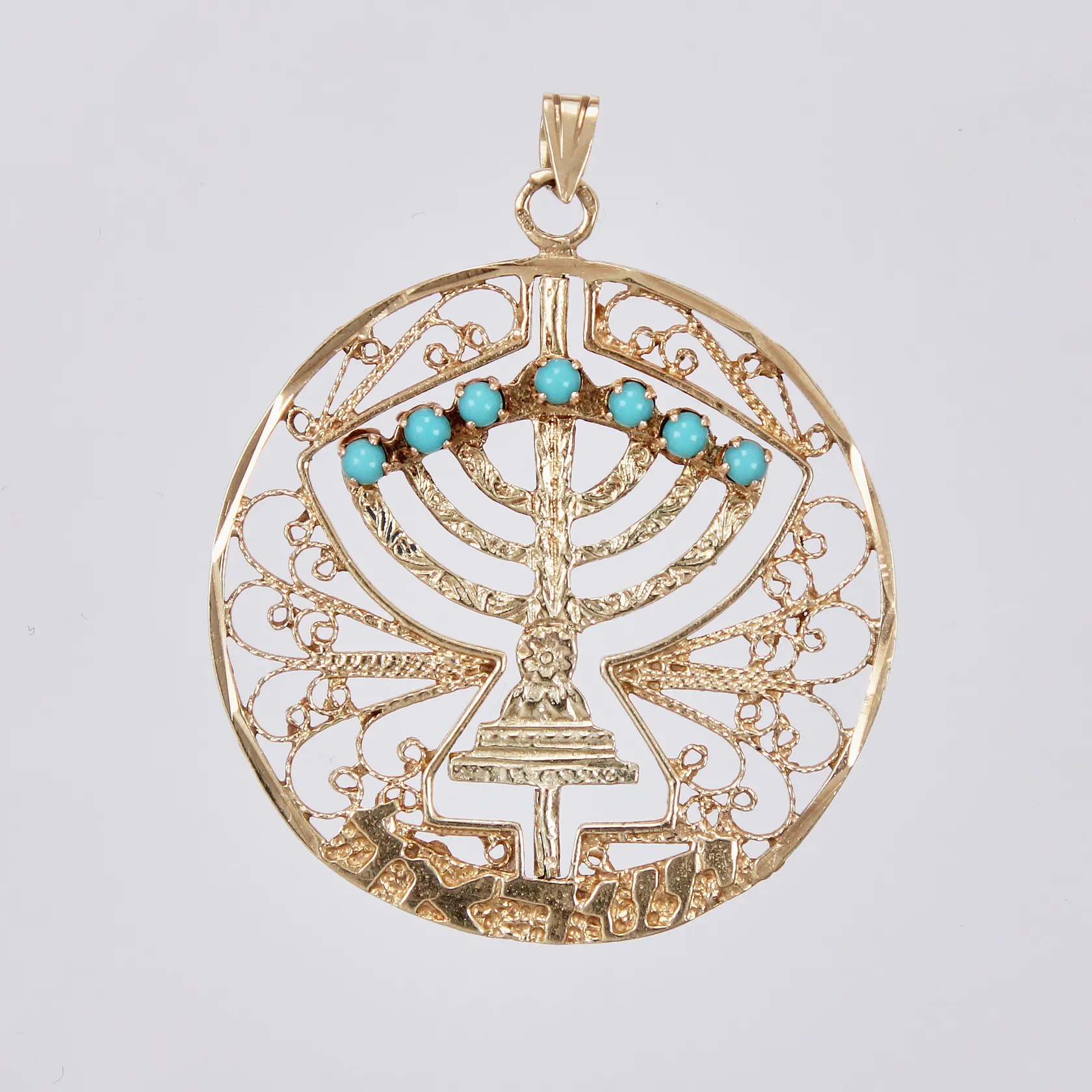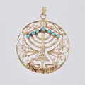 Hänge med turkoser & syntetiska stenar, Ø 35mm, 14K Vikt: 6,2 g.