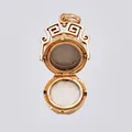 Hänge/Medaljong plats med sex foton utvecklingsba längd: ca 3cm, bredd: ca 19mm, en buckla, 18K Vikt: 9,1 g.