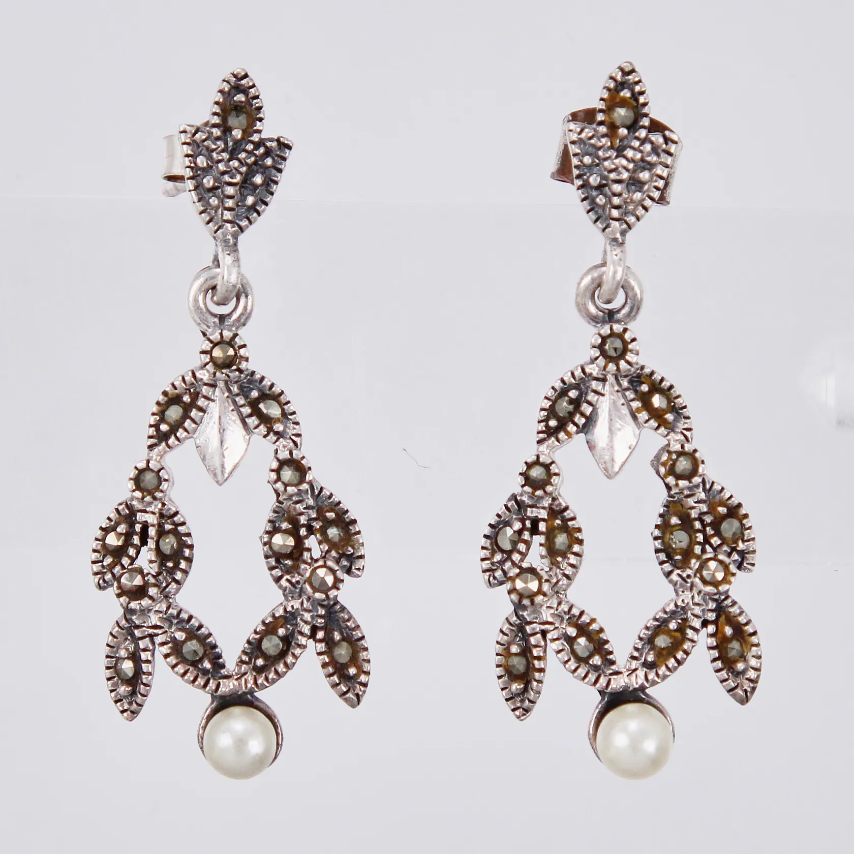 Ett par örhängen med plastpärlor, längd ca 35mm, bredd ca 5-13mm, silver Vikt: 4,8 g.